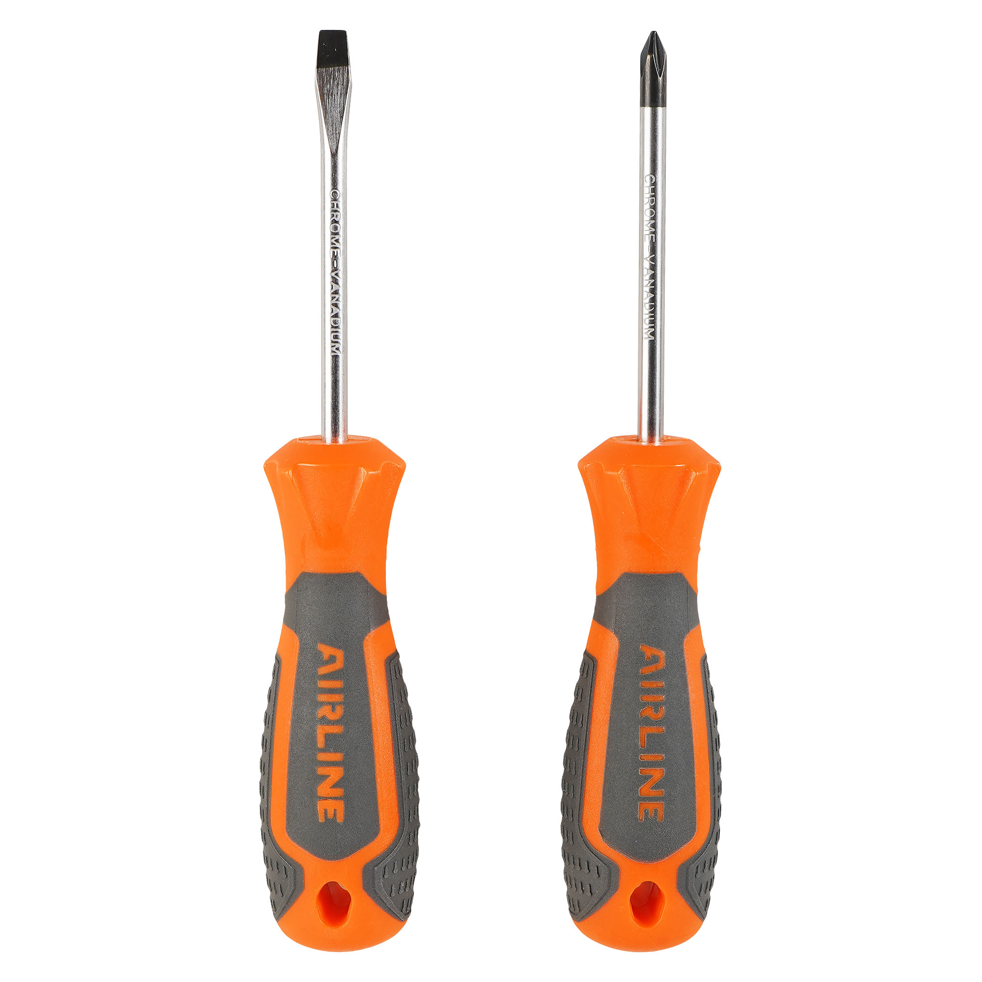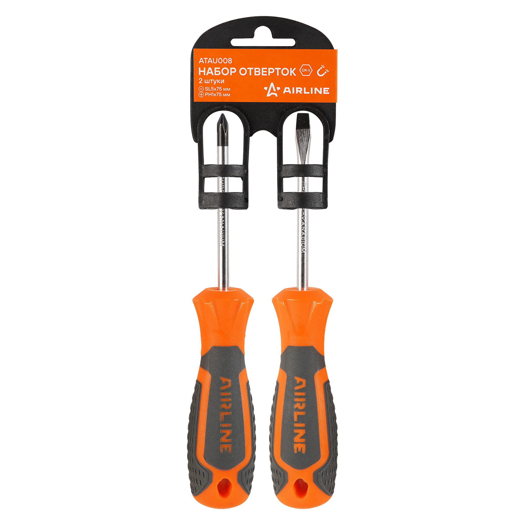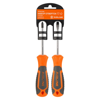 Сочетание твёрдых и мягких элементов рукоятки оптимально распределяет усилие, прилагаемое к инструменту, и предотвращает проскальзывание. Эргономичный дизайн облегчает работу. Отвёртки AIRLINE удобно подвешиваются за специальное отверстие. Лезвие отвёрток AIRLINE изготовлено из хром-ванадиевой стали, жало подвержено индукционной закалке и фосфатировано.