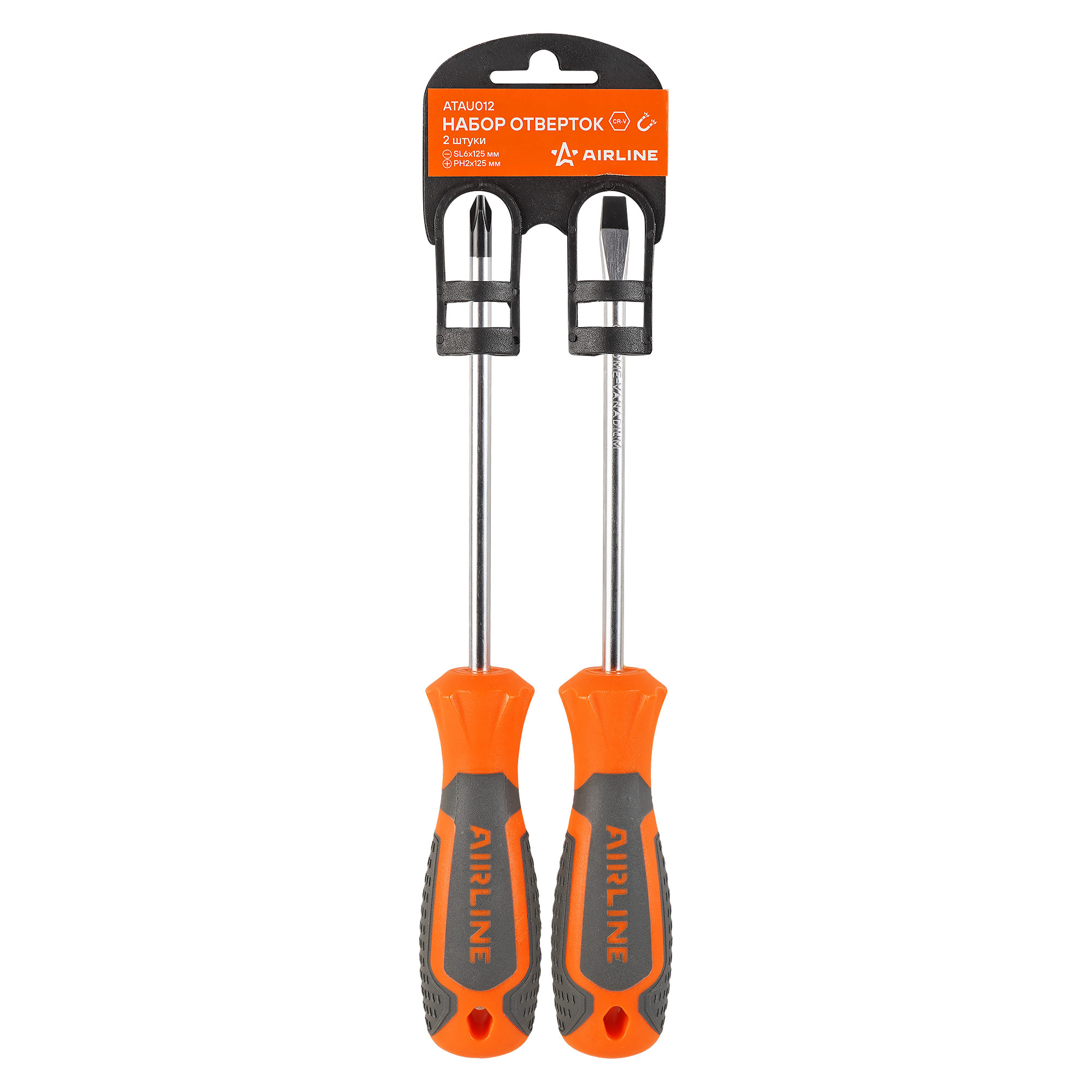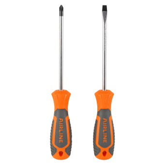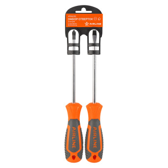 Сочетание твёрдых и мягких элементов рукоятки оптимально распределяет усилие, прилагаемое к инструменту, и предотвращает проскальзывание. Эргономичный дизайн облегчает работу. Отвёртки AIRLINE удобно подвешиваются за специальное отверстие. Лезвие отвёрток AIRLINE изготовлено из хром-ванадиевой стали, жало подвержено индукционной закалке и фосфатировано.