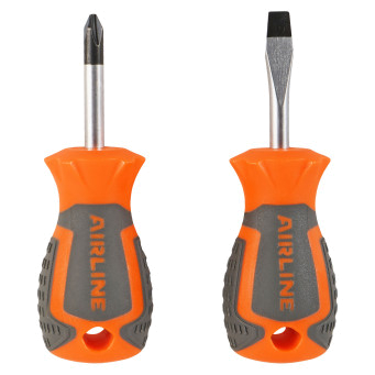 Сочетание твёрдых и мягких элементов рукоятки оптимально распределяет усилие, прилагаемое к инструменту, и предотвращает проскальзывание. Эргономичный дизайн облегчает работу. Отвёртки AIRLINE удобно подвешиваются за специальное отверстие. Лезвие отвёрток AIRLINE изготовлено из хром-ванадиевой стали, жало подвержено индукционной закалке и фосфатировано.