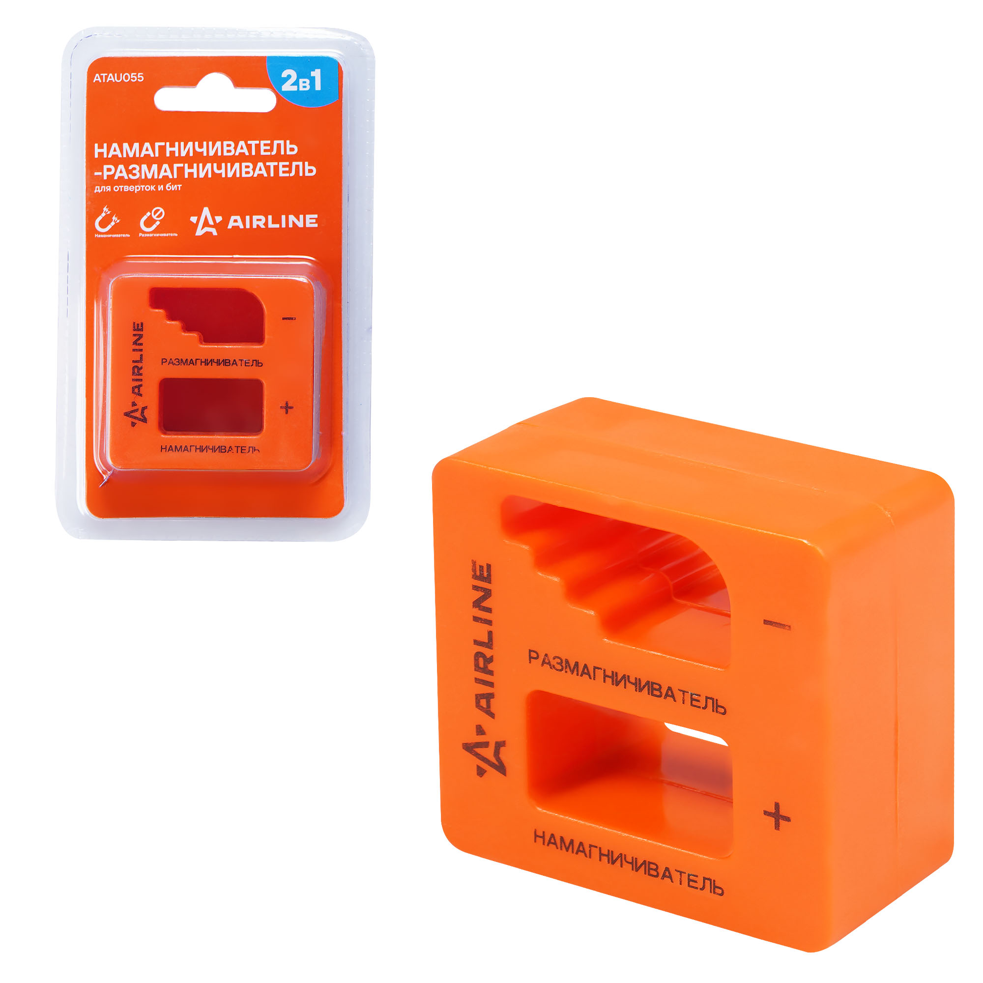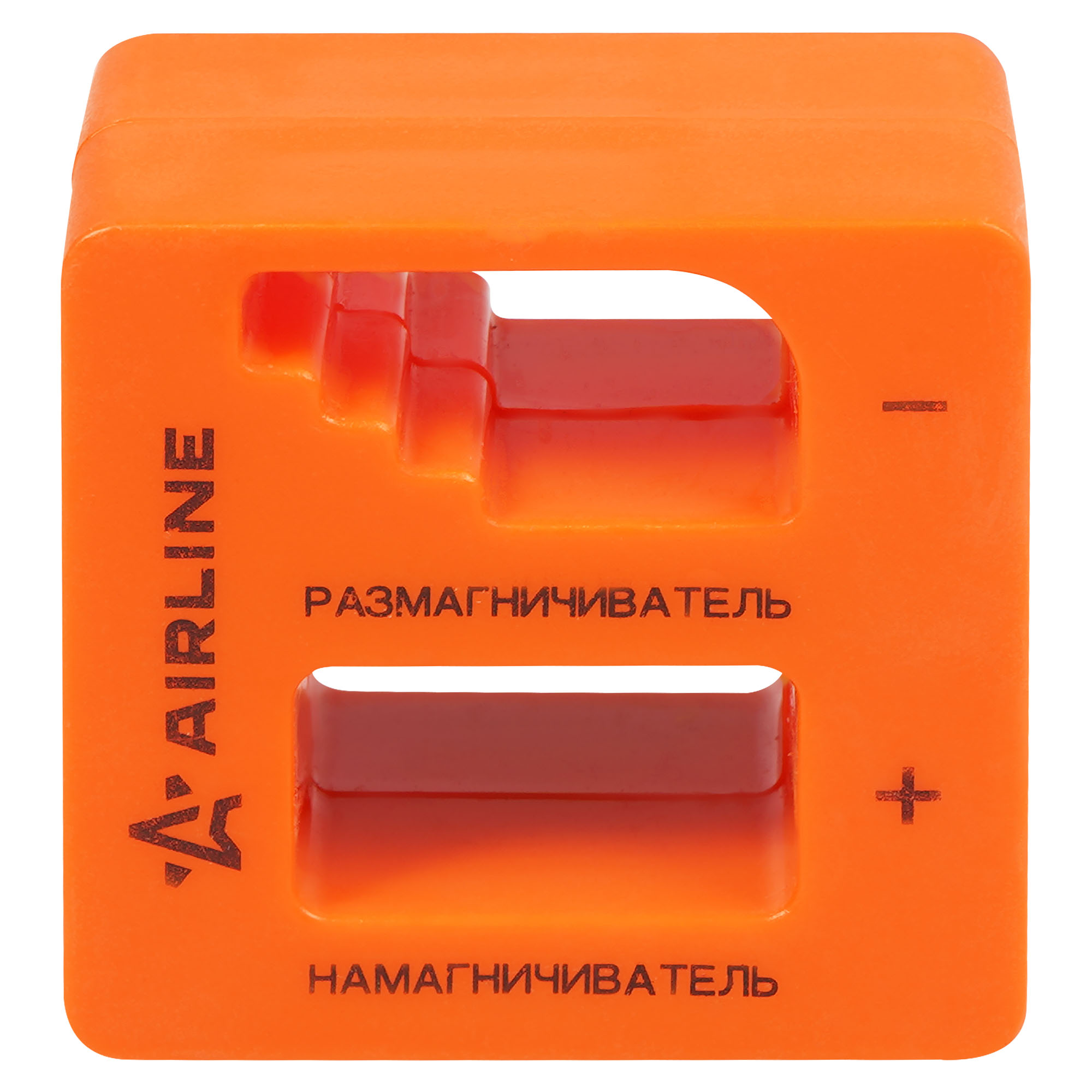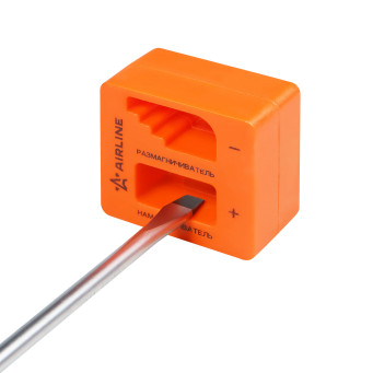Устройство позволяет намагнитить и при необходимости размагнитить жало отвёртки для удобного удерживания крепежа при работе.