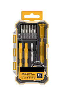 Инструмент для точных работ, набор 19пр. (рукоятка, биты PH, SL, TORX), пласт. кейс