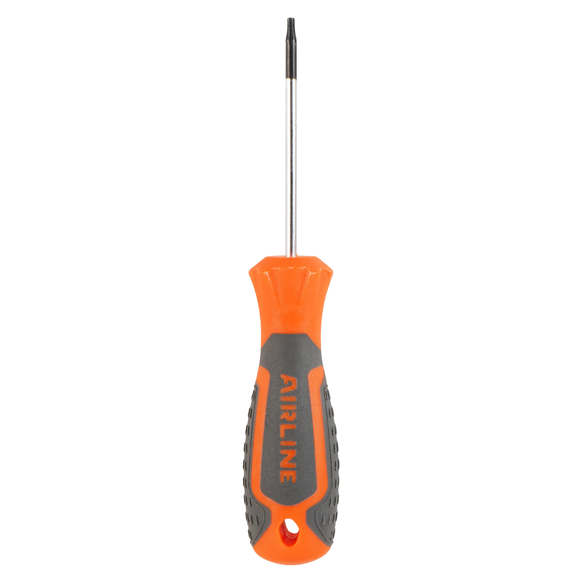 Сочетание твёрдых и мягких элементов рукоятки оптимально распределяет усилие, прилагаемое к инструменту, и предотвращает проскальзывание. Эргономичный дизайн облегчает работу. Отвёртки AIRLINE удобно подвешиваются за специальное отверстие. Лезвие отвёрток AIRLINE изготовлено из хром-ванадиевой стали, жало подвержено индукционной закалке и фосфатировано.