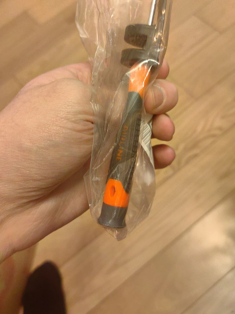 Сочетание твёрдых и мягких элементов рукоятки оптимально распределяет усилие, прилагаемое к инструменту, и предотвращает проскальзывание. Эргономичный дизайн облегчает работу. Отвёртки AIRLINE удобно подвешиваются за специальное отверстие. Лезвие отвёрток AIRLINE изготовлено из хром-ванадиевой стали, жало подвержено индукционной закалке и фосфатировано.