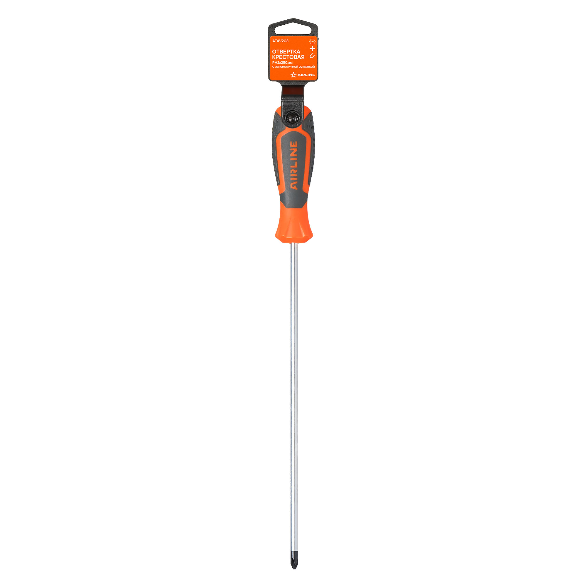 Сочетание твёрдых и мягких элементов рукоятки оптимально распределяет усилие, прилагаемое к инструменту, и предотвращает проскальзывание. Эргономичный дизайн облегчает работу. Отвёртки AIRLINE удобно подвешиваются за специальное отверстие. Лезвие отвёрток AIRLINE изготовлено из хром-ванадиевой стали, жало подвержено индукционной закалке и фосфатировано.