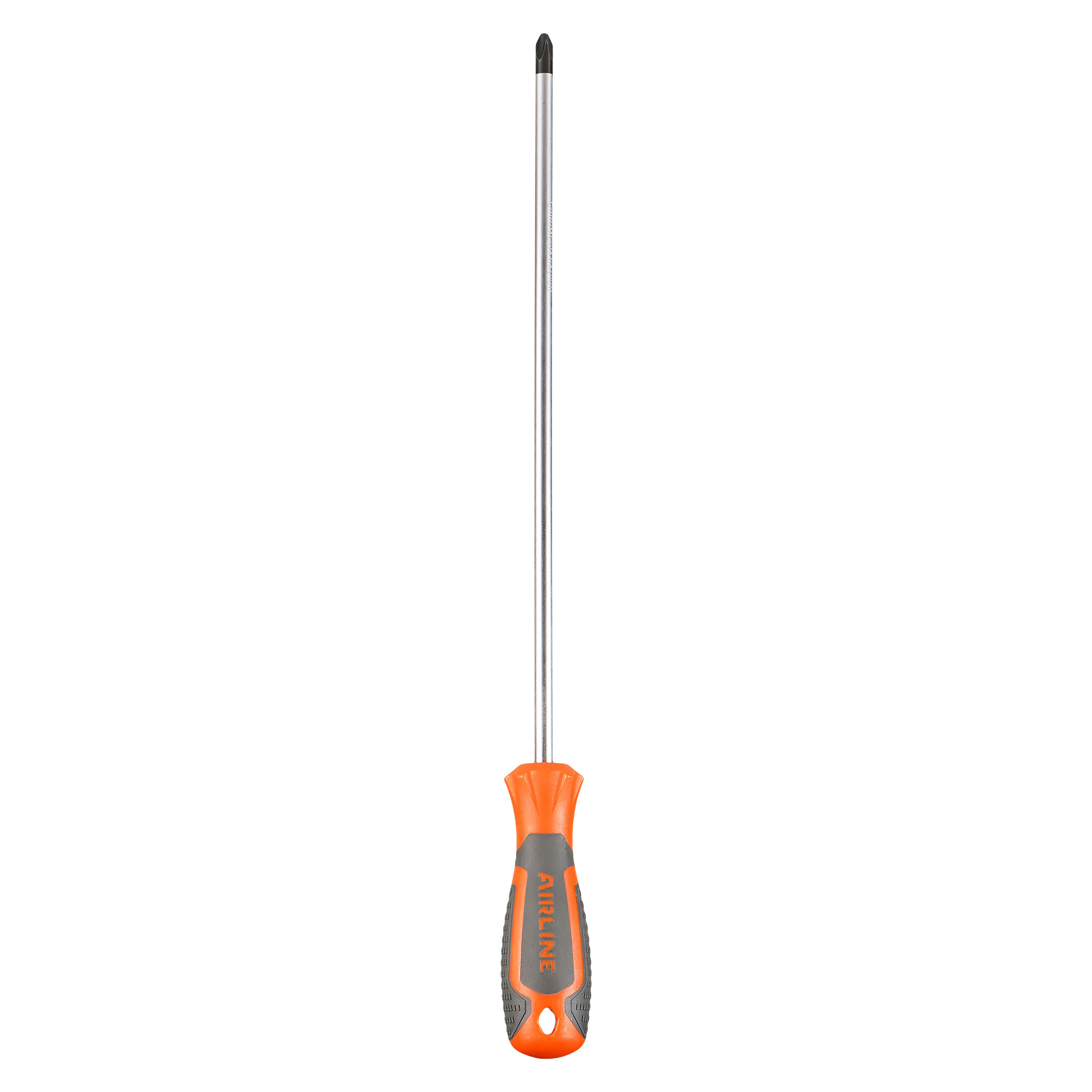 Сочетание твёрдых и мягких элементов рукоятки оптимально распределяет усилие, прилагаемое к инструменту, и предотвращает проскальзывание. Эргономичный дизайн облегчает работу. Отвёртки AIRLINE удобно подвешиваются за специальное отверстие. Лезвие отвёрток AIRLINE изготовлено из хром-ванадиевой стали, жало подвержено индукционной закалке и фосфатировано.