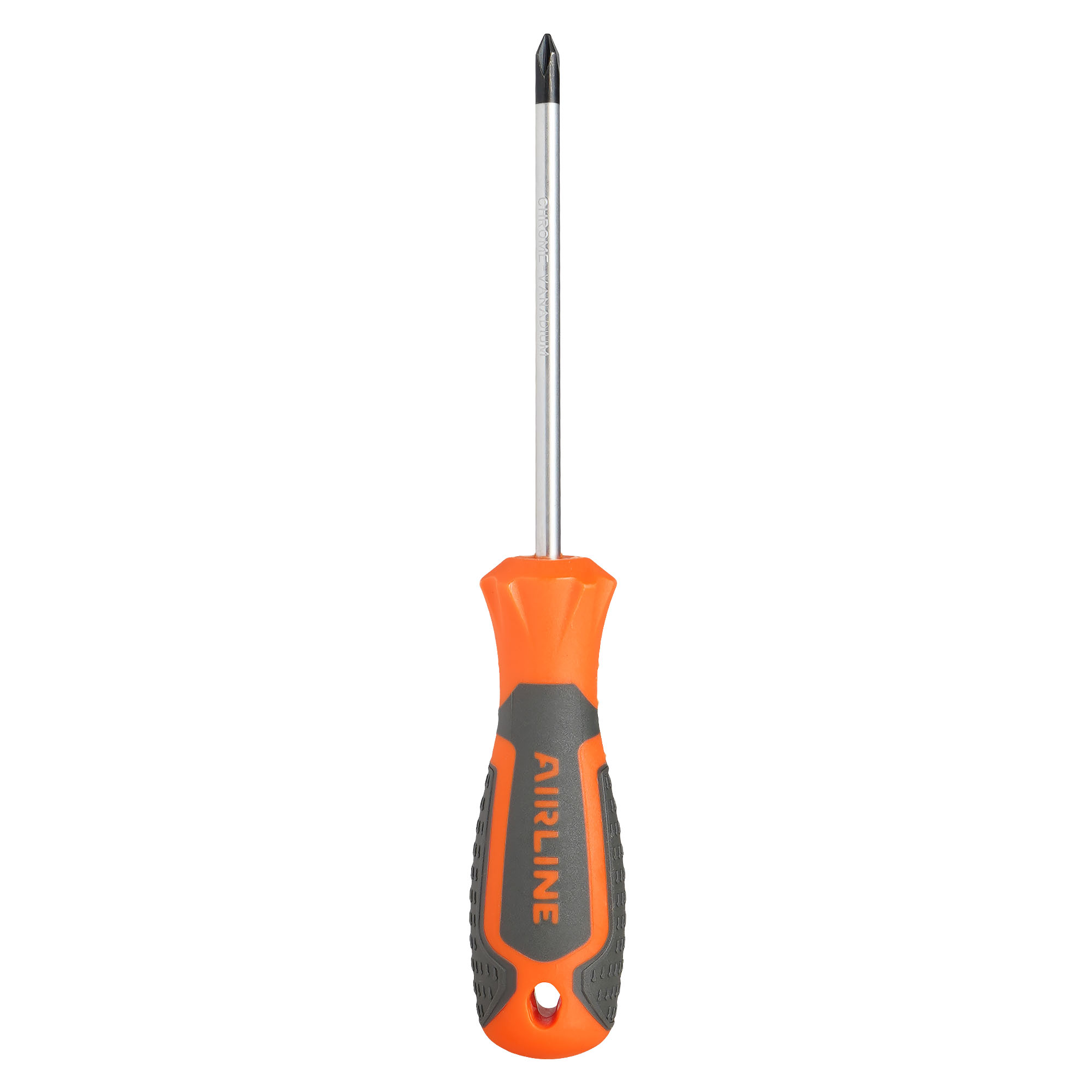 Сочетание твёрдых и мягких элементов рукоятки оптимально распределяет усилие, прилагаемое к инструменту, и предотвращает проскальзывание. Эргономичный дизайн облегчает работу. Отвёртки AIRLINE удобно подвешиваются за специальное отверстие. Лезвие отвёрток AIRLINE изготовлено из хром-ванадиевой стали, жало подвержено индукционной закалке и фосфатировано.