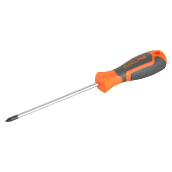 Сочетание твёрдых и мягких элементов рукоятки оптимально распределяет усилие, прилагаемое к инструменту, и предотвращает проскальзывание. Эргономичный дизайн облегчает работу. Отвёртки AIRLINE удобно подвешиваются за специальное отверстие. Лезвие отвёрток AIRLINE изготовлено из хром-ванадиевой стали, жало подвержено индукционной закалке и фосфатировано.