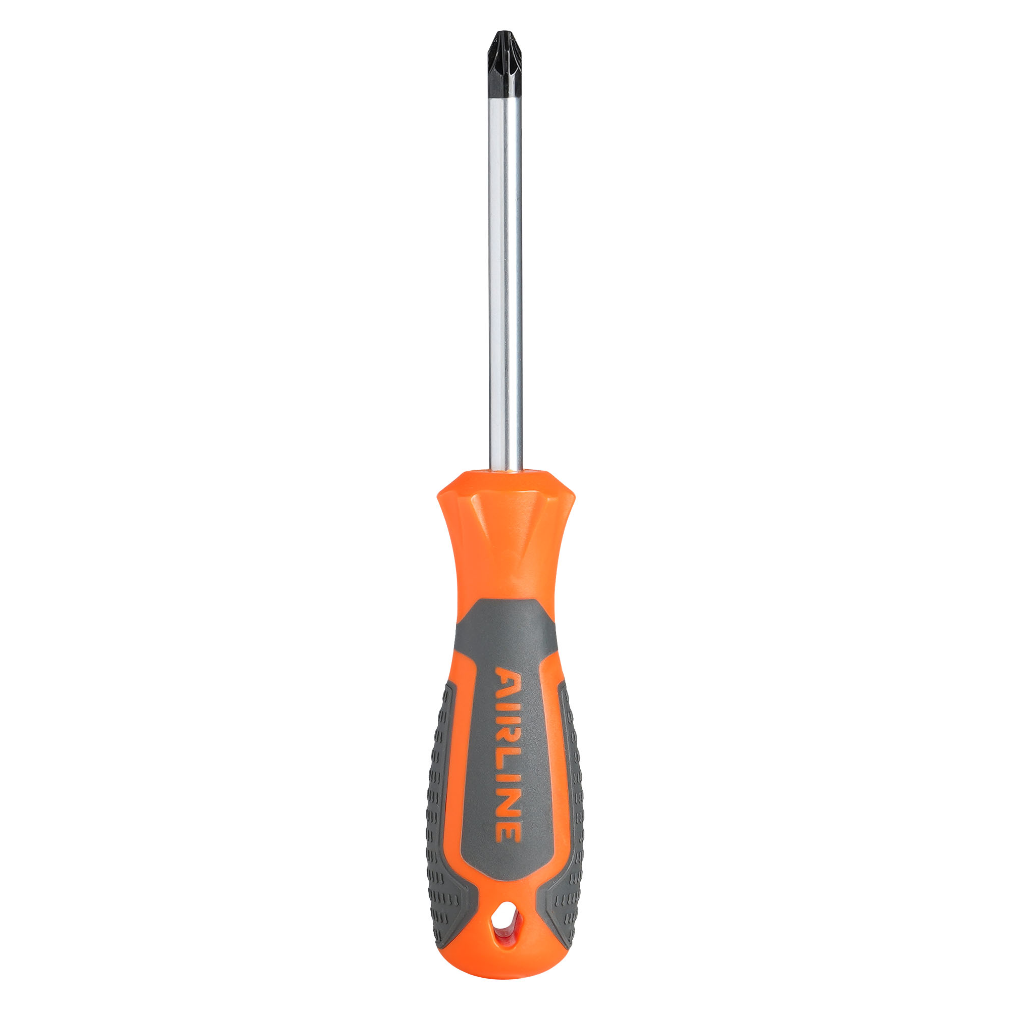 Сочетание твёрдых и мягких элементов рукоятки оптимально распределяет усилие, прилагаемое к инструменту, и предотвращает проскальзывание. Эргономичный дизайн облегчает работу. Отвёртки AIRLINE удобно подвешиваются за специальное отверстие. Лезвие отвёрток AIRLINE изготовлено из хром-ванадиевой стали, жало подвержено индукционной закалке и фосфатировано.
