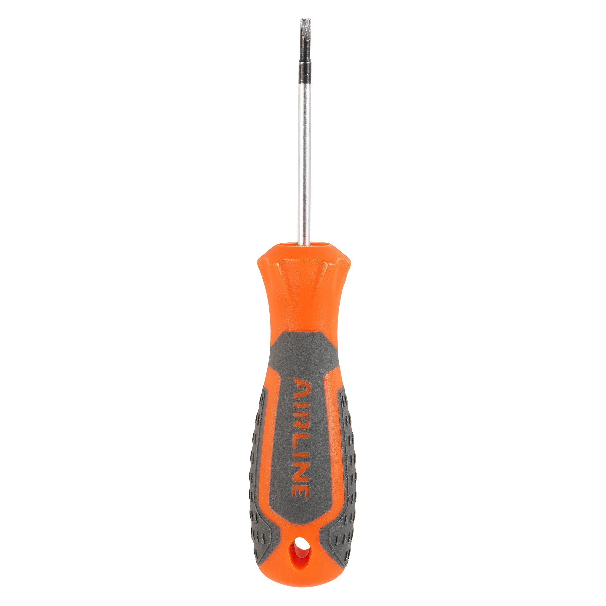Сочетание твёрдых и мягких элементов рукоятки оптимально распределяет усилие, прилагаемое к инструменту, и предотвращает проскальзывание. Эргономичный дизайн облегчает работу. Отвёртки AIRLINE удобно подвешиваются за специальное отверстие. Лезвие отвёрток AIRLINE изготовлено из хром-ванадиевой стали, жало подвержено индукционной закалке и фосфатировано.