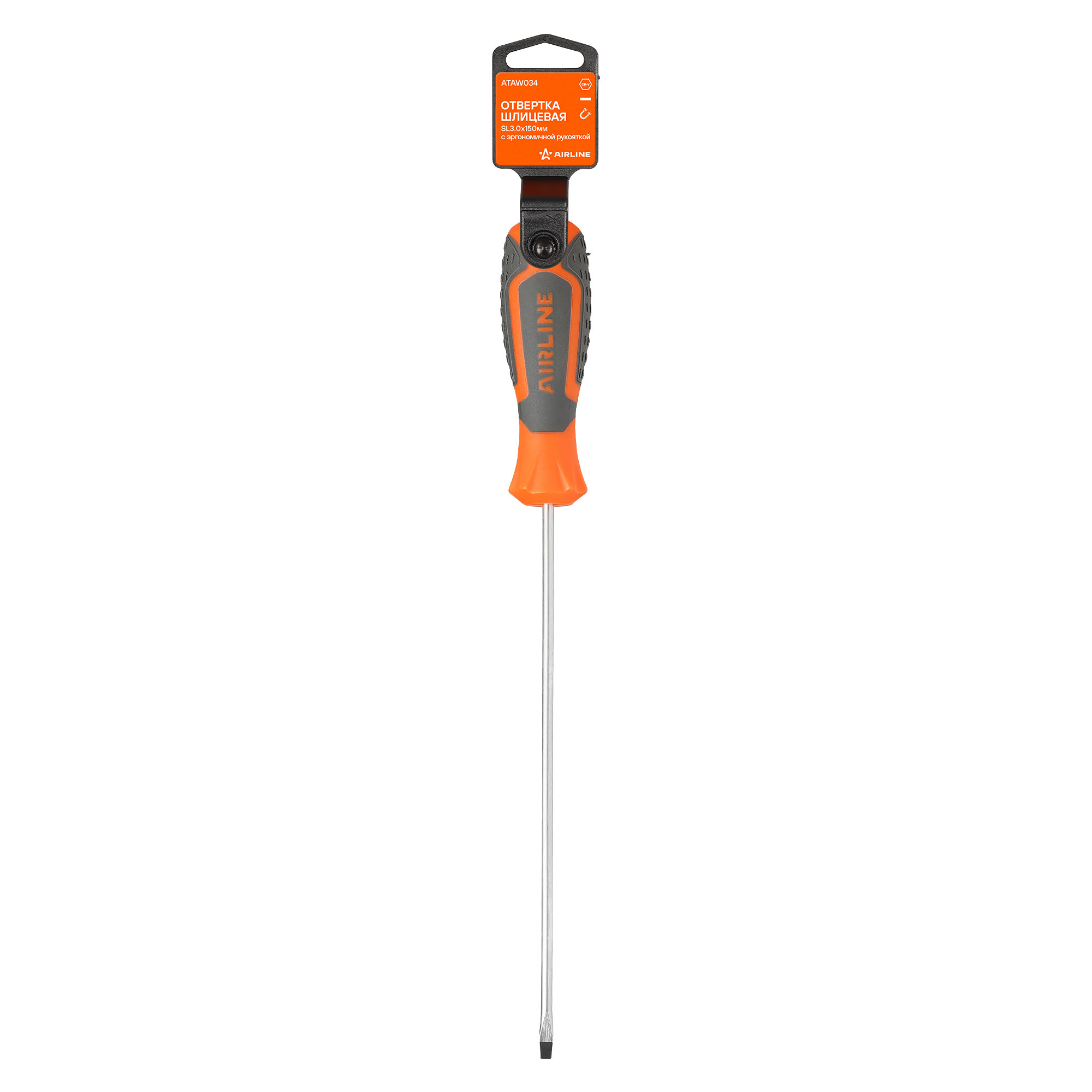 Сочетание твёрдых и мягких элементов рукоятки оптимально распределяет усилие, прилагаемое к инструменту, и предотвращает проскальзывание. Эргономичный дизайн облегчает работу. Отвёртки AIRLINE удобно подвешиваются за специальное отверстие. Лезвие отвёрток AIRLINE изготовлено из хром-ванадиевой стали, жало подвержено индукционной закалке и фосфатировано.