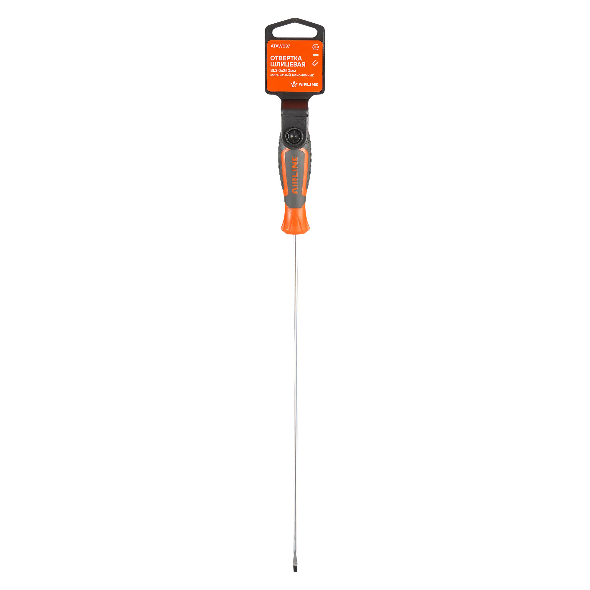 Отвертка шлицевая SL3.0x250мм, магнитный наконечник, пласт.подвес