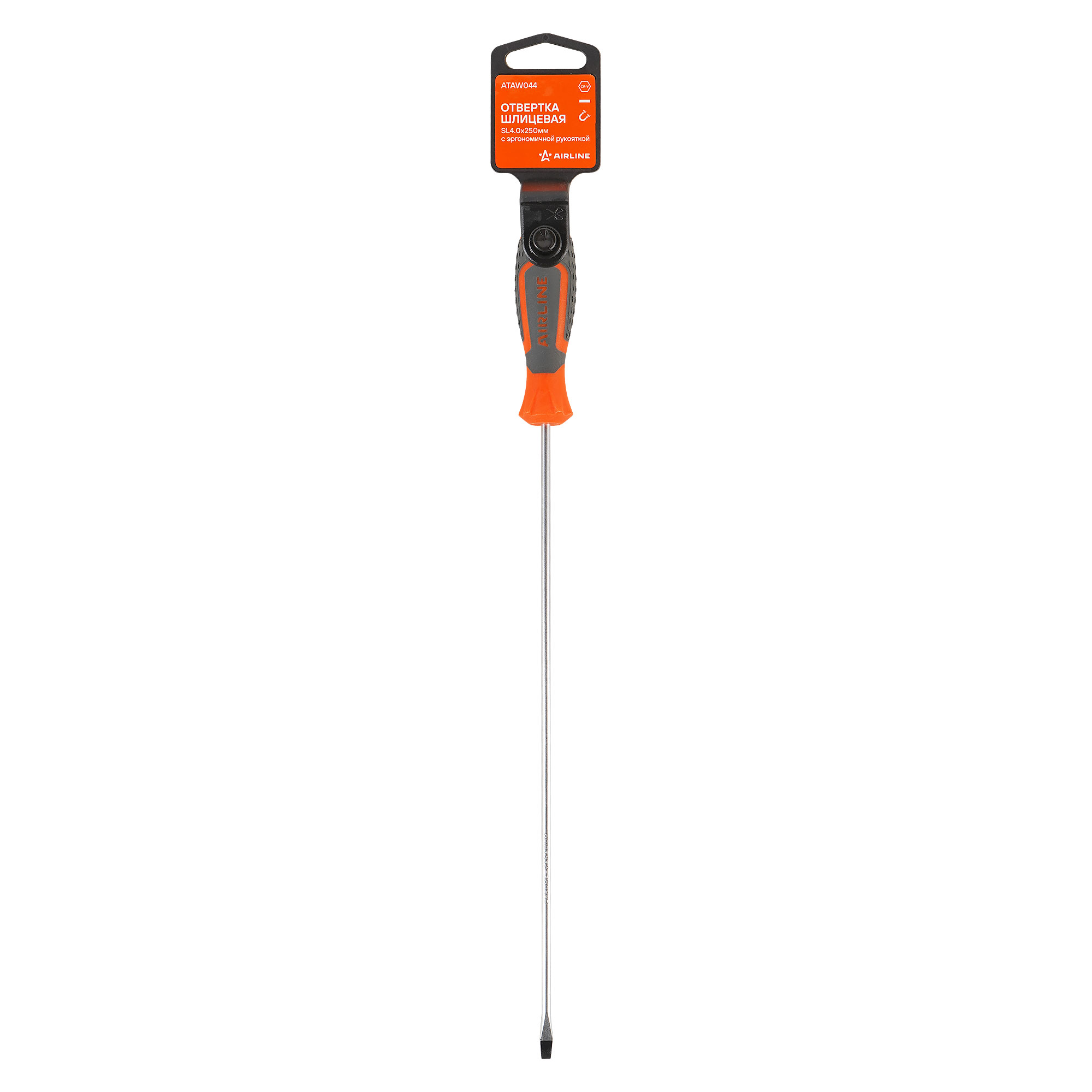 Отвертка шлицевая SL4.0x250мм, магнитный наконечник, пласт.подвес