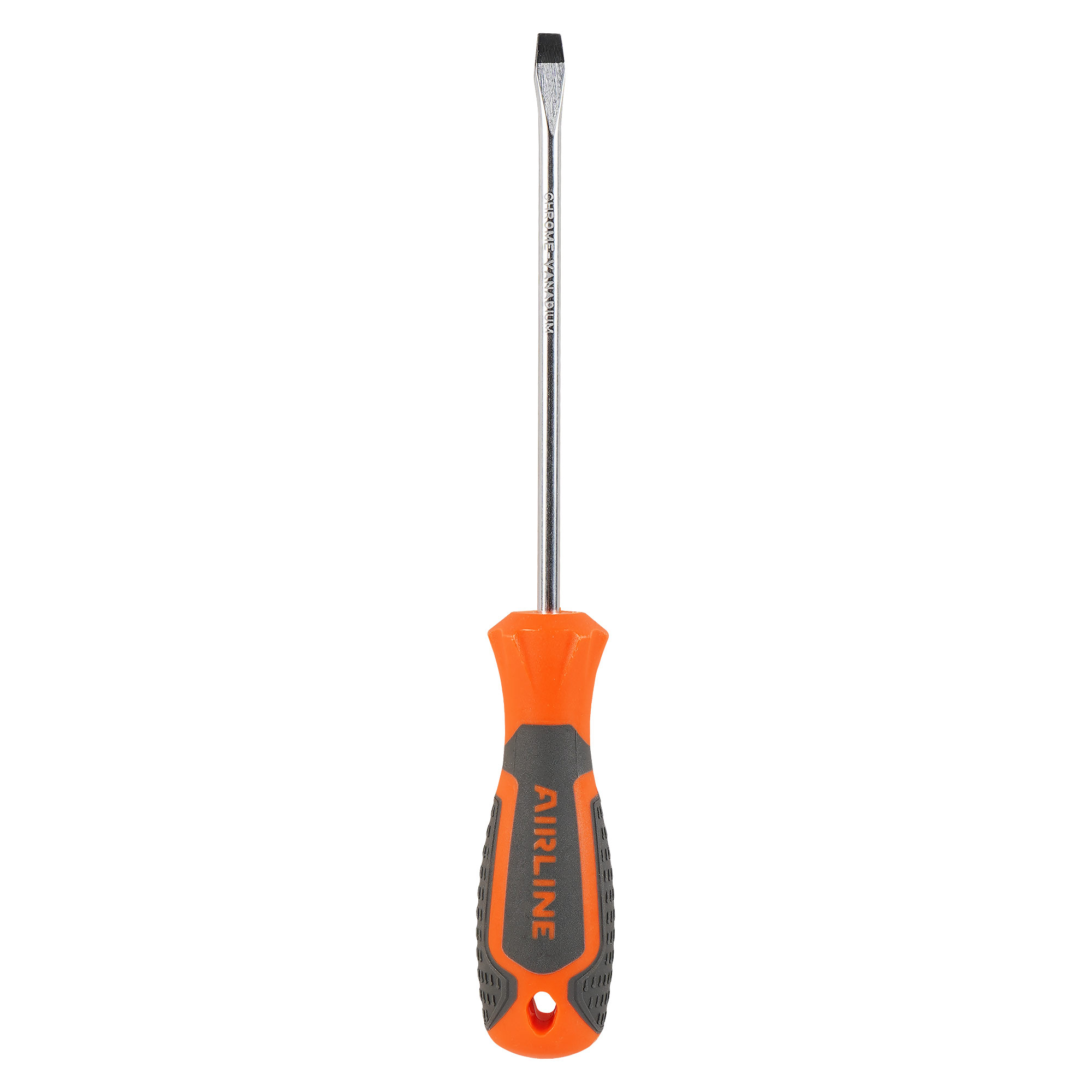 Сочетание твёрдых и мягких элементов рукоятки оптимально распределяет усилие, прилагаемое к инструменту, и предотвращает проскальзывание. Эргономичный дизайн облегчает работу. Отвёртки AIRLINE удобно подвешиваются за специальное отверстие. Лезвие отвёрток AIRLINE изготовлено из хром-ванадиевой стали, жало подвержено индукционной закалке и фосфатировано.