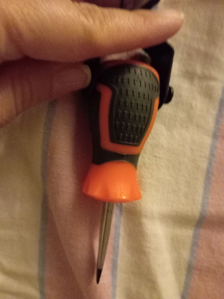 Достоинства: Удобаня маленькая отвёртка,, можно везде подлезть, прорезиненная
