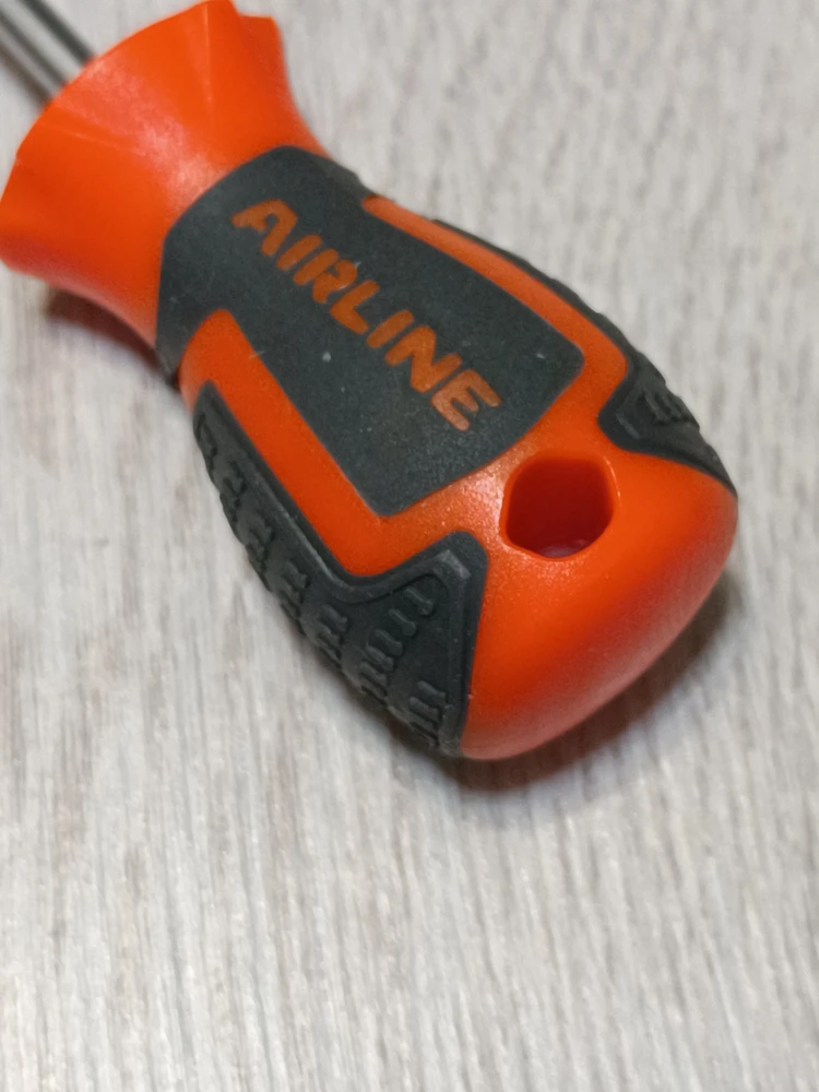 Сочетание твёрдых и мягких элементов рукоятки оптимально распределяет усилие, прилагаемое к инструменту, и предотвращает проскальзывание. Эргономичный дизайн облегчает работу. Отвёртки AIRLINE удобно подвешиваются за специальное отверстие. Лезвие отвёрток AIRLINE изготовлено из хром-ванадиевой стали, жало подвержено индукционной закалке и фосфатировано.