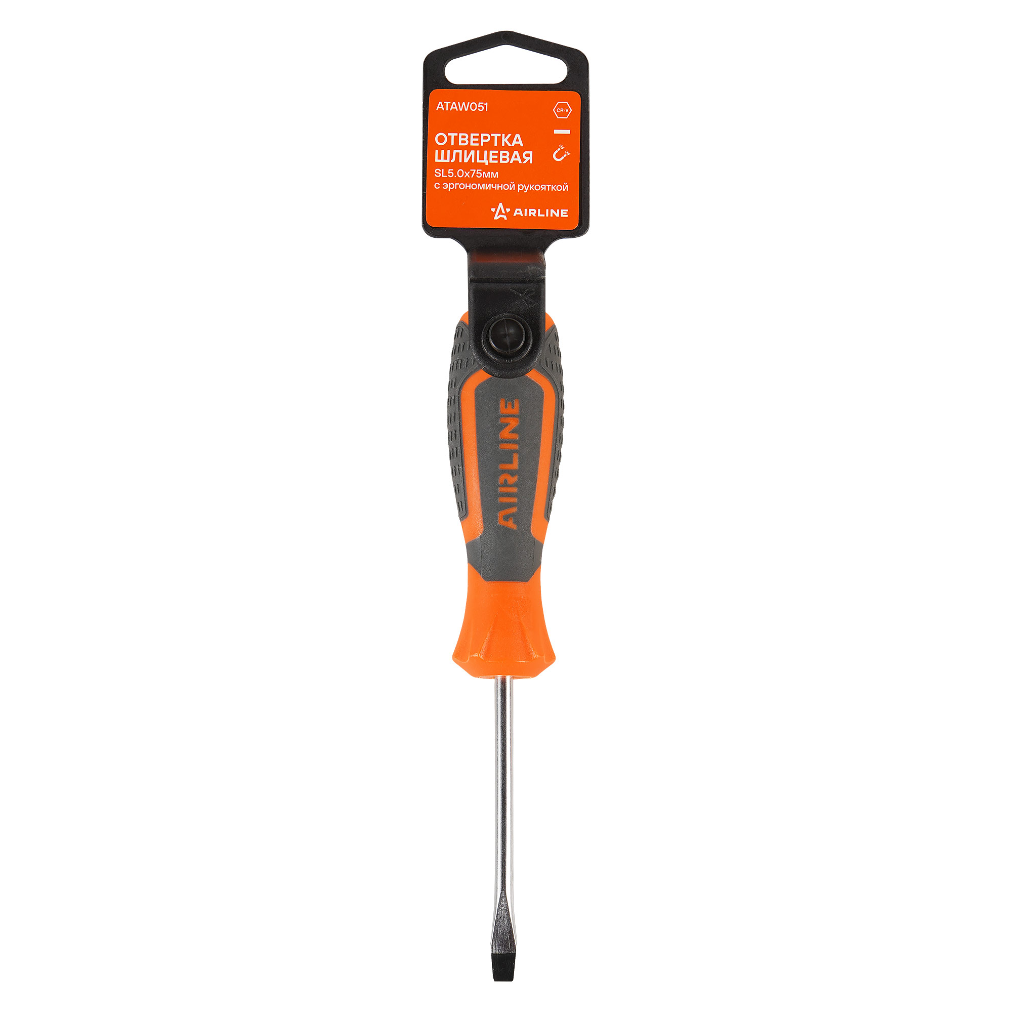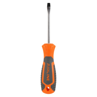 Сочетание твёрдых и мягких элементов рукоятки оптимально распределяет усилие, прилагаемое к инструменту, и предотвращает проскальзывание. Эргономичный дизайн облегчает работу. Отвёртки AIRLINE удобно подвешиваются за специальное отверстие. Лезвие отвёрток AIRLINE изготовлено из хром-ванадиевой стали, жало подвержено индукционной закалке и фосфатировано.