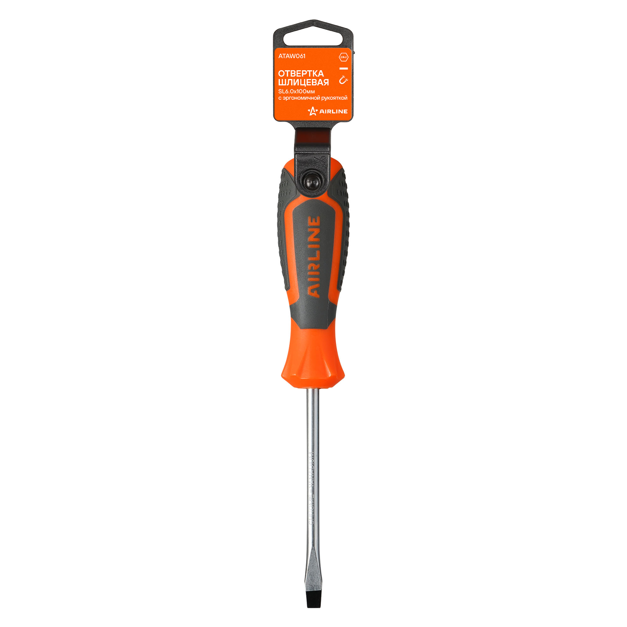 Сочетание твёрдых и мягких элементов рукоятки оптимально распределяет усилие, прилагаемое к инструменту, и предотвращает проскальзывание. Эргономичный дизайн облегчает работу. Отвёртки AIRLINE удобно подвешиваются за специальное отверстие. Лезвие отвёрток AIRLINE изготовлено из хром-ванадиевой стали, жало подвержено индукционной закалке и фосфатировано.