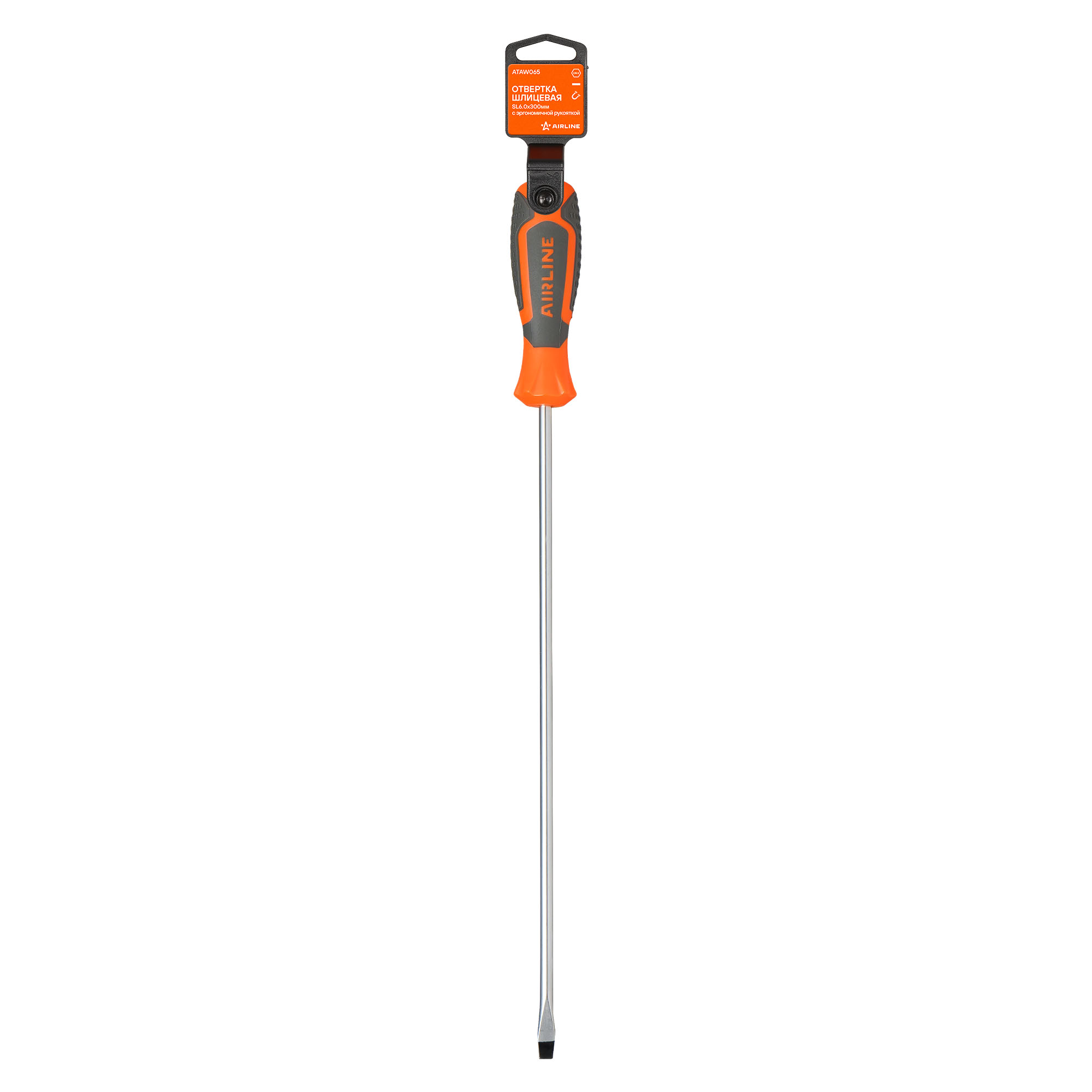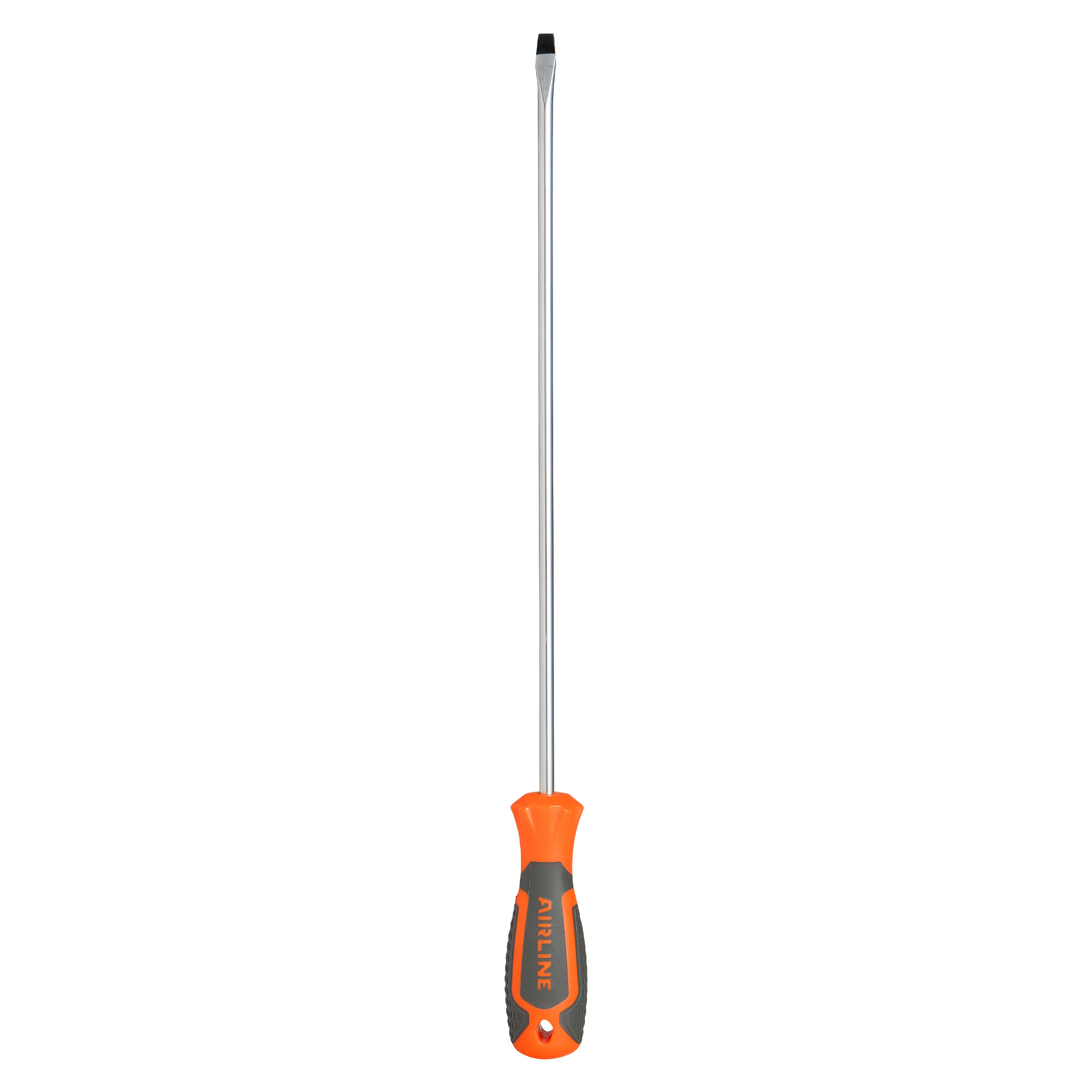 Сочетание твёрдых и мягких элементов рукоятки оптимально распределяет усилие, прилагаемое к инструменту, и предотвращает проскальзывание. Эргономичный дизайн облегчает работу. Отвёртки AIRLINE удобно подвешиваются за специальное отверстие. Лезвие отвёрток AIRLINE изготовлено из хром-ванадиевой стали, жало подвержено индукционной закалке и фосфатировано.
