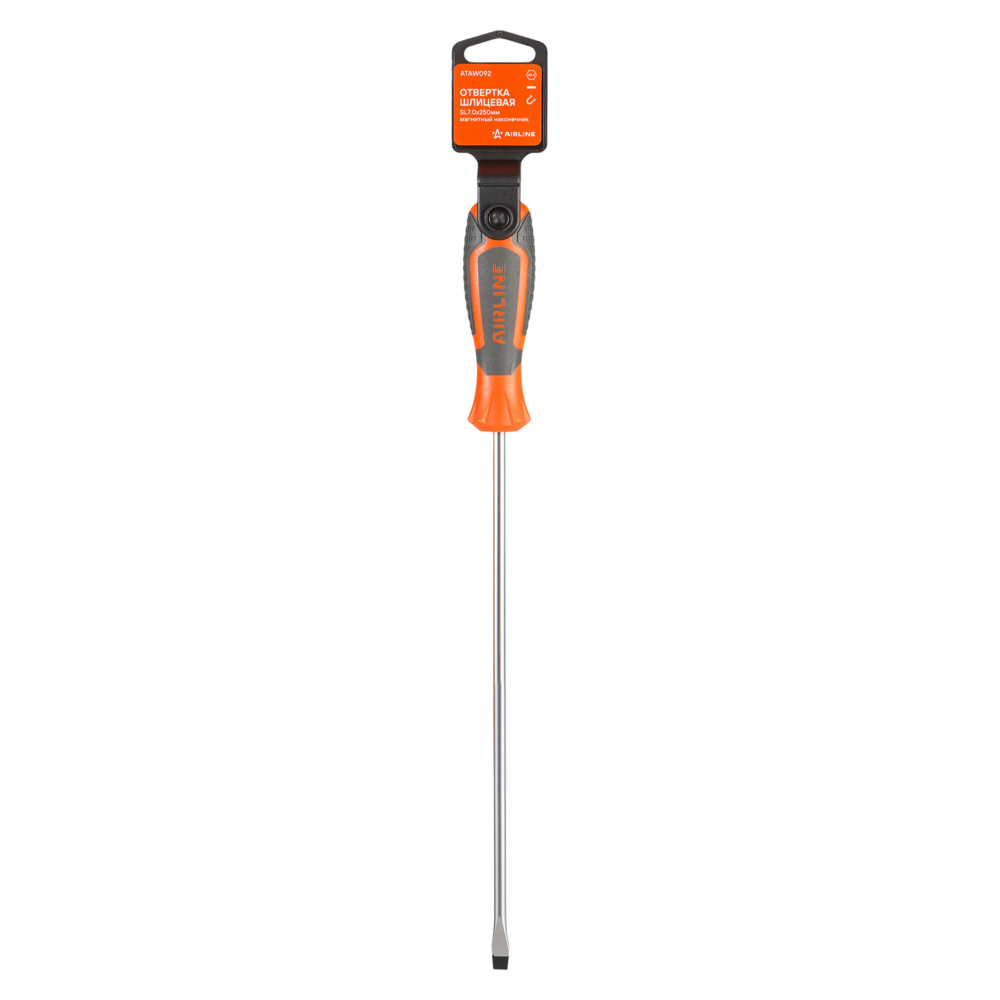 Сочетание твёрдых и мягких элементов рукоятки оптимально распределяет усилие, прилагаемое к инструменту, и предотвращает проскальзывание. Эргономичный дизайн облегчает работу. Отвёртки AIRLINE удобно подвешиваются за специальное отверстие. Лезвие отвёрток AIRLINE изготовлено из хром-ванадиевой стали, жало подвержено индукционной закалке и фосфатировано.