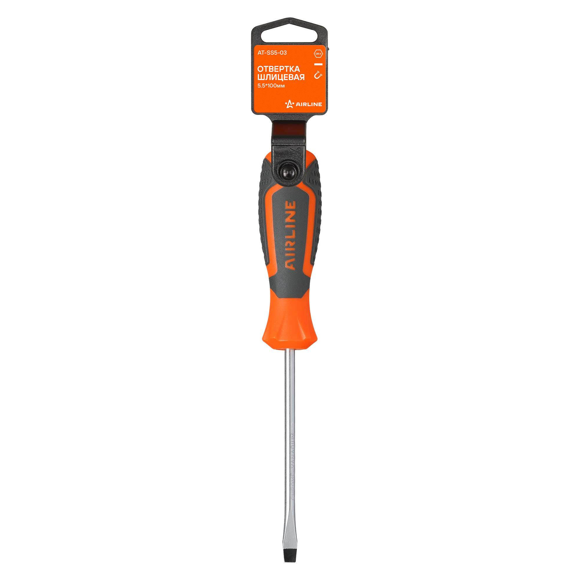Сочетание твёрдых и мягких элементов рукоятки оптимально распределяет усилие, прилагаемое к инструменту, и предотвращает проскальзывание. Эргономичный дизайн облегчает работу. Отвёртки AIRLINE удобно подвешиваются за специальное отверстие. Лезвие отвёрток AIRLINE изготовлено из хром-ванадиевой стали, жало подвержено индукционной закалке и фосфатировано.