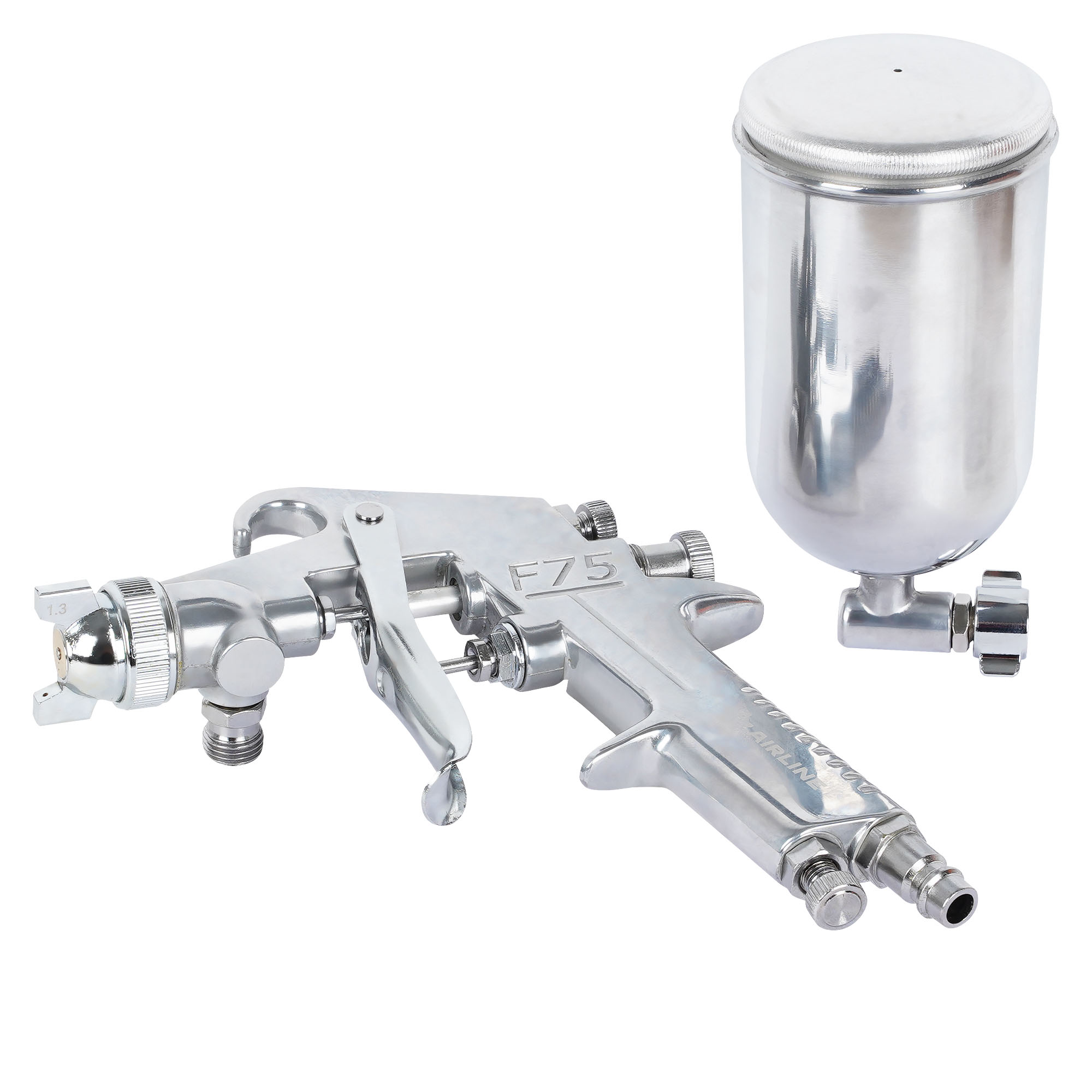 Краскопульт AIRLINE с боковым бачком 1.3. мм. предназначен для малярных работ. Инструмент оснащен регулировками подачи воздуха, формы факела и регулировкой подачи краски. Бачок выполнен из нержавеющей стали, что добавяет ему прочности во время взаимодействия с лакокрасочными материалами. Положение бачка относительно краскопульта можно изменять в зависимости от необходимости нанесения материала в разных плоскостях.