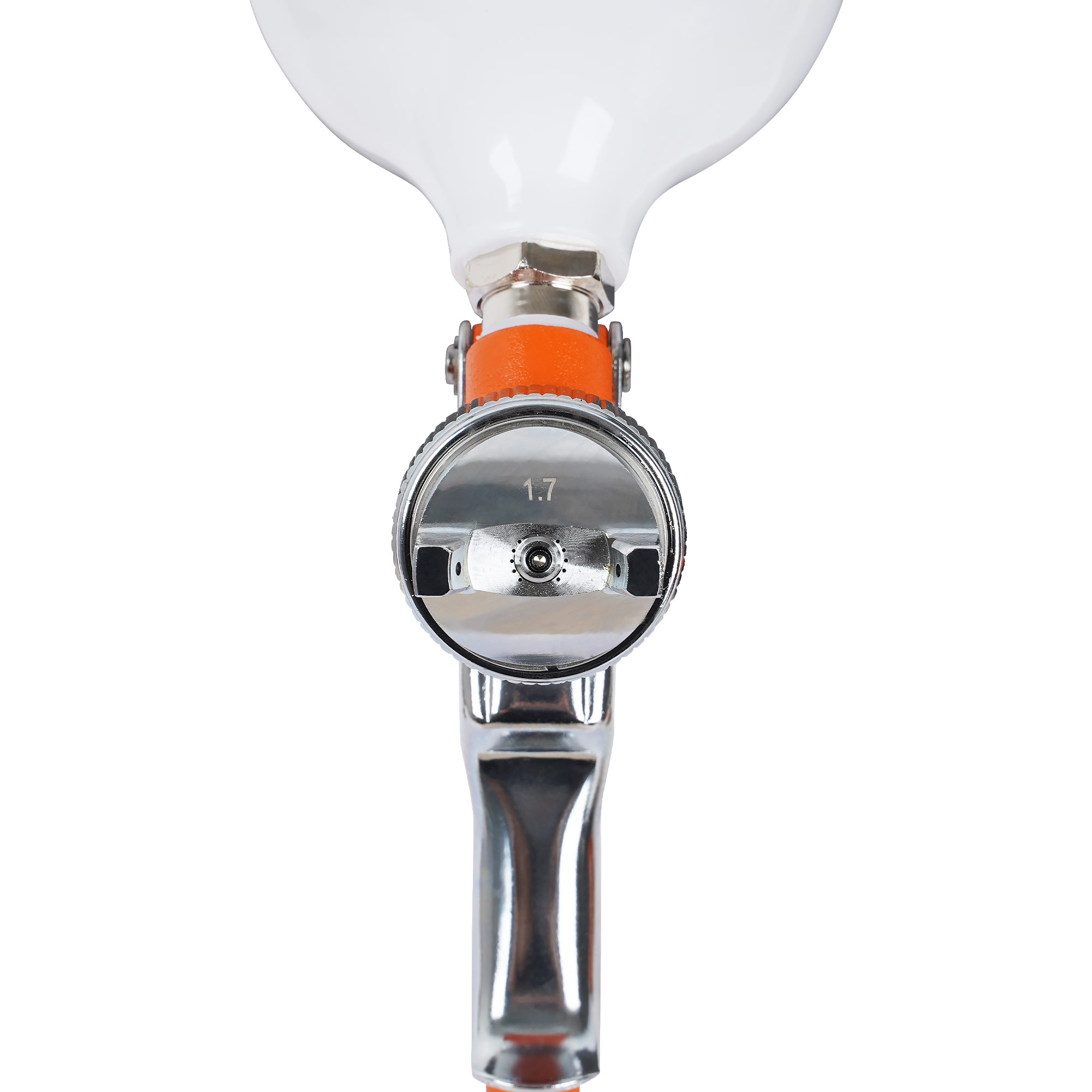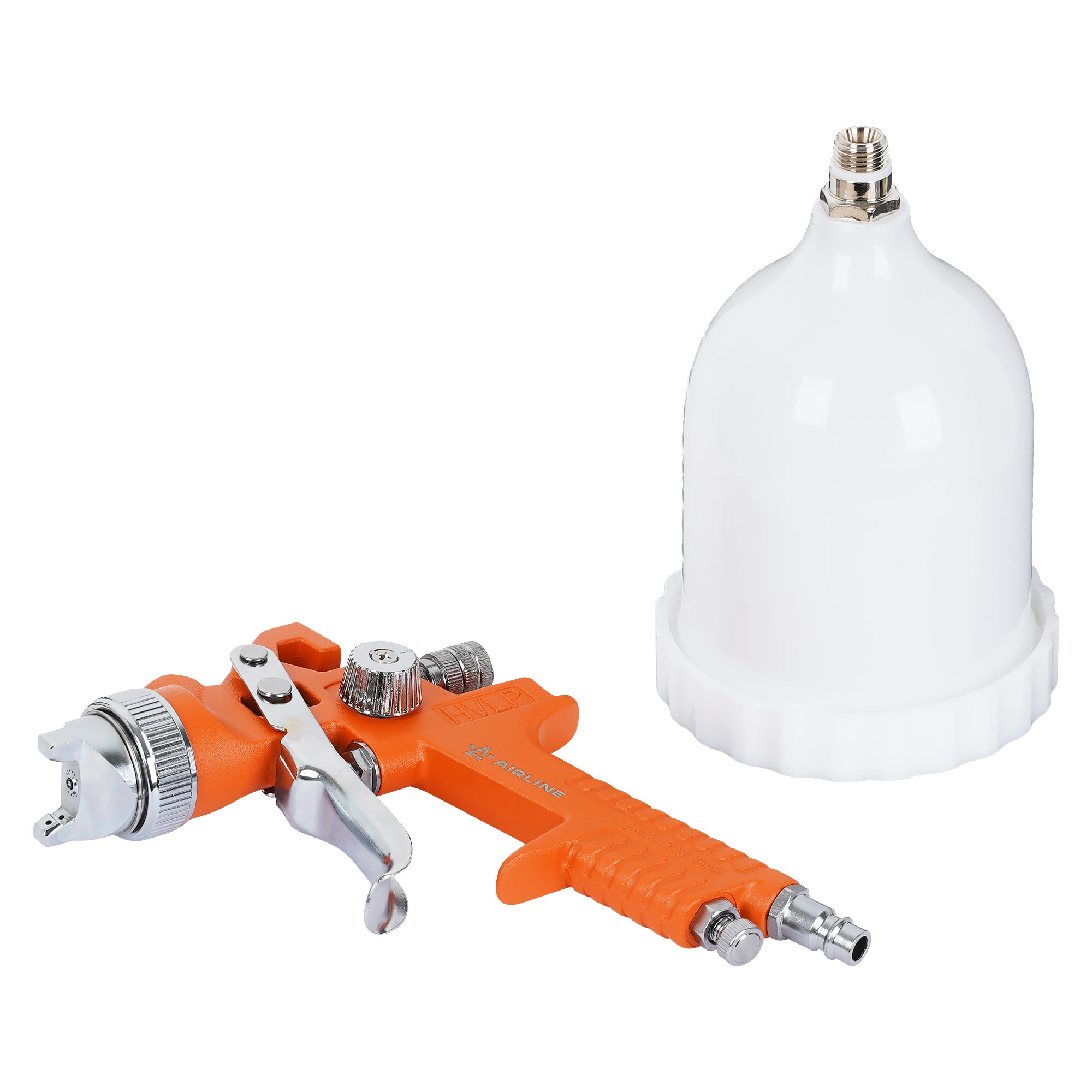 Краскопульт AIRLINE HVLP оснащен соплом диаметром 1.7 мм. Применяется для распыления лакокрасочных материалов на обрабатываемые поверхности. Технология HVLP позволяет переносить около 65% лакокрасочного материала, что снижает расход и количество выброса частиц краски в атмосферу. Бачок рассчитан на 600 мл. При продолжительной работе с инструментом вес краскопульта в снаряженном состоянии не вызывает ощущения тяжести в руке. Инструмент оснащен тремя регулировками, которые позволяют выставить необходимый объем подаваемого воздуха в канал краскопульта, отрегулировать форму факела и количество подачи материала из бачка.