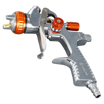 Профессиональный краскопульт системы LVMP 1.4 мм. применяется для распыления лакокрасочных материалов на обрабатываемые поверхности. Система распыления LVMP позволяет переносить на деталь лакокрасочные покрытия с экономией материала при распылении. Данная система имеет высокий коэффициент переноса материала, составляющий около 70%, что снижает расход и количество выброса частиц краски в атмосферу. Бачок рассчитан на 600 мл. При продолжительной работе с инструментом вес краскопульта в снаряженном состоянии не вызывает ощущения тяжести в руке. Инструмент оснащен тремя регулировками, которые позволяют выставить необходимый объем подаваемого воздуха в канал краскопульта, отрегулировать форму факела и количество подачи материала из бачка. Данная модель имеет более удобную рукоять и эргономичный корпус.