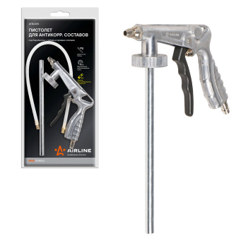 Пистолет изготовлен из металла. Имеет стандартное присоединение под евробаллон и дополнительное гибкое сопло для нанесения составов в скрытых полостях и труднодоступных местах.