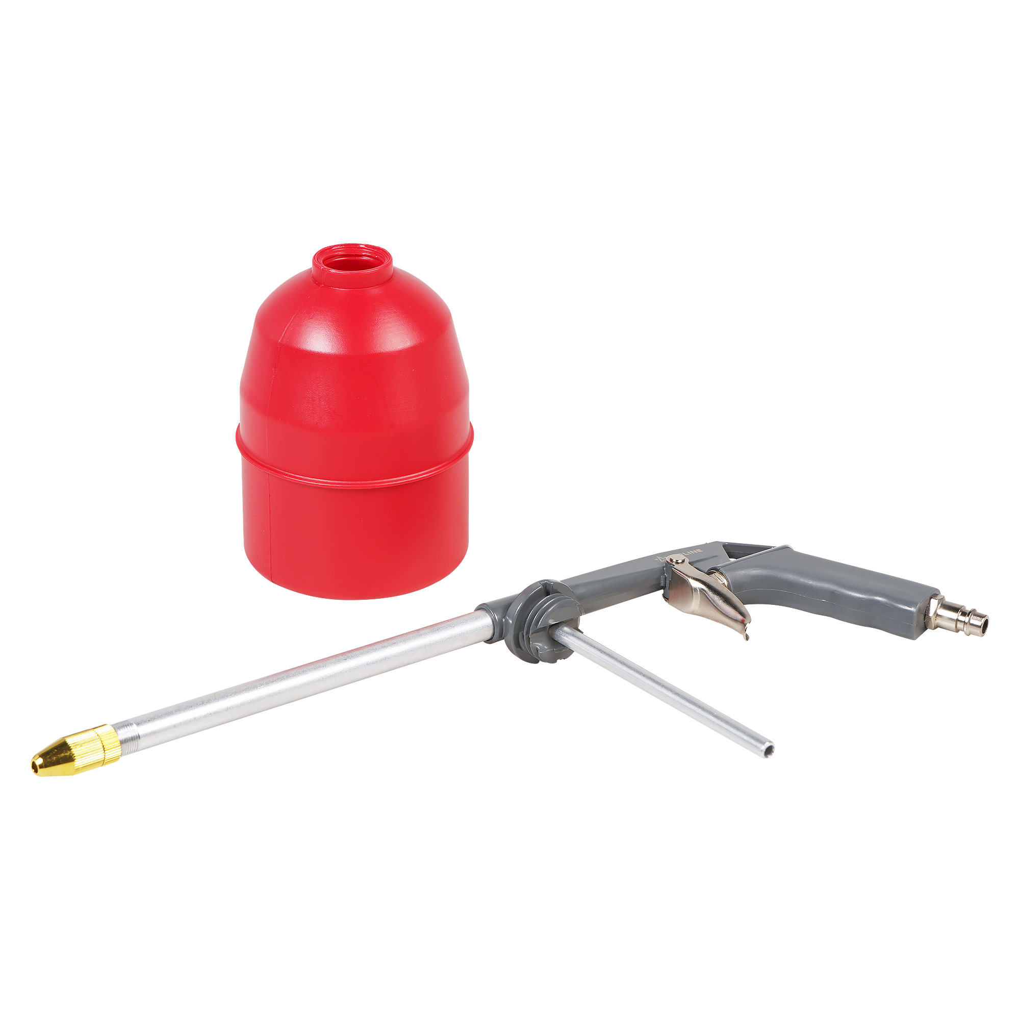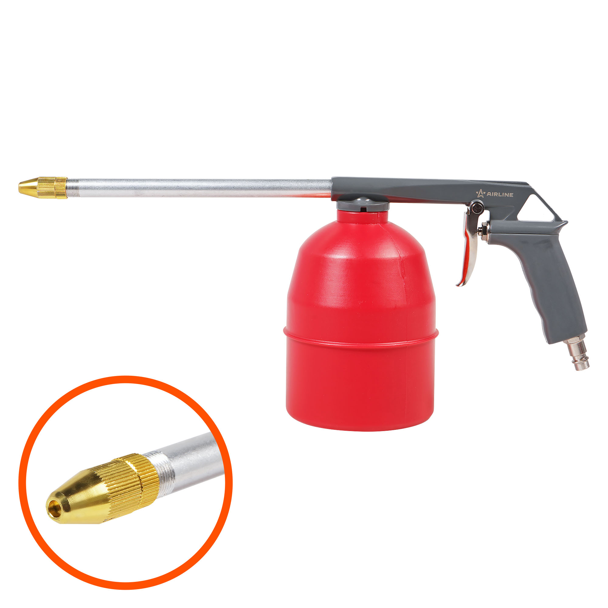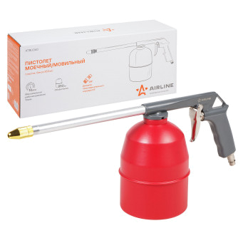 Пистолет изготовлен из металла. Имеет съёмный пластиковый бачок для распыляемого состава.