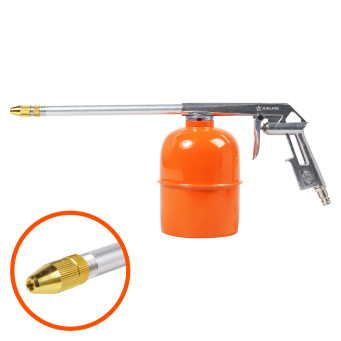 Пистолет изготовлен из металла. Имеет съёмный бачок для распыляемого состава.