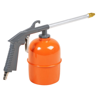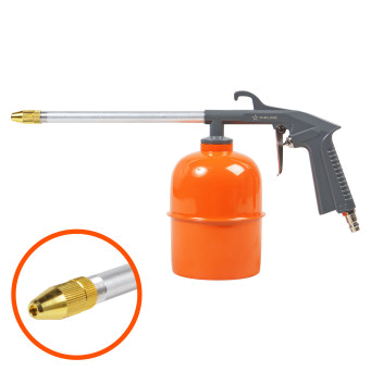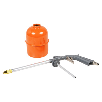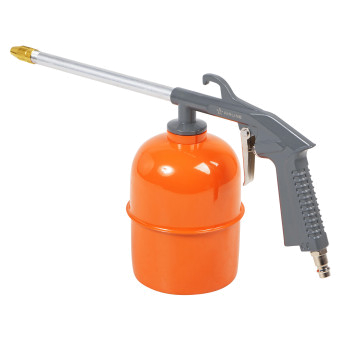 Пистолет изготовлен из металла. Имеет съёмный бачок для распыляемого состава.