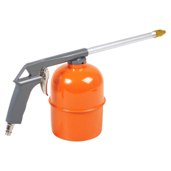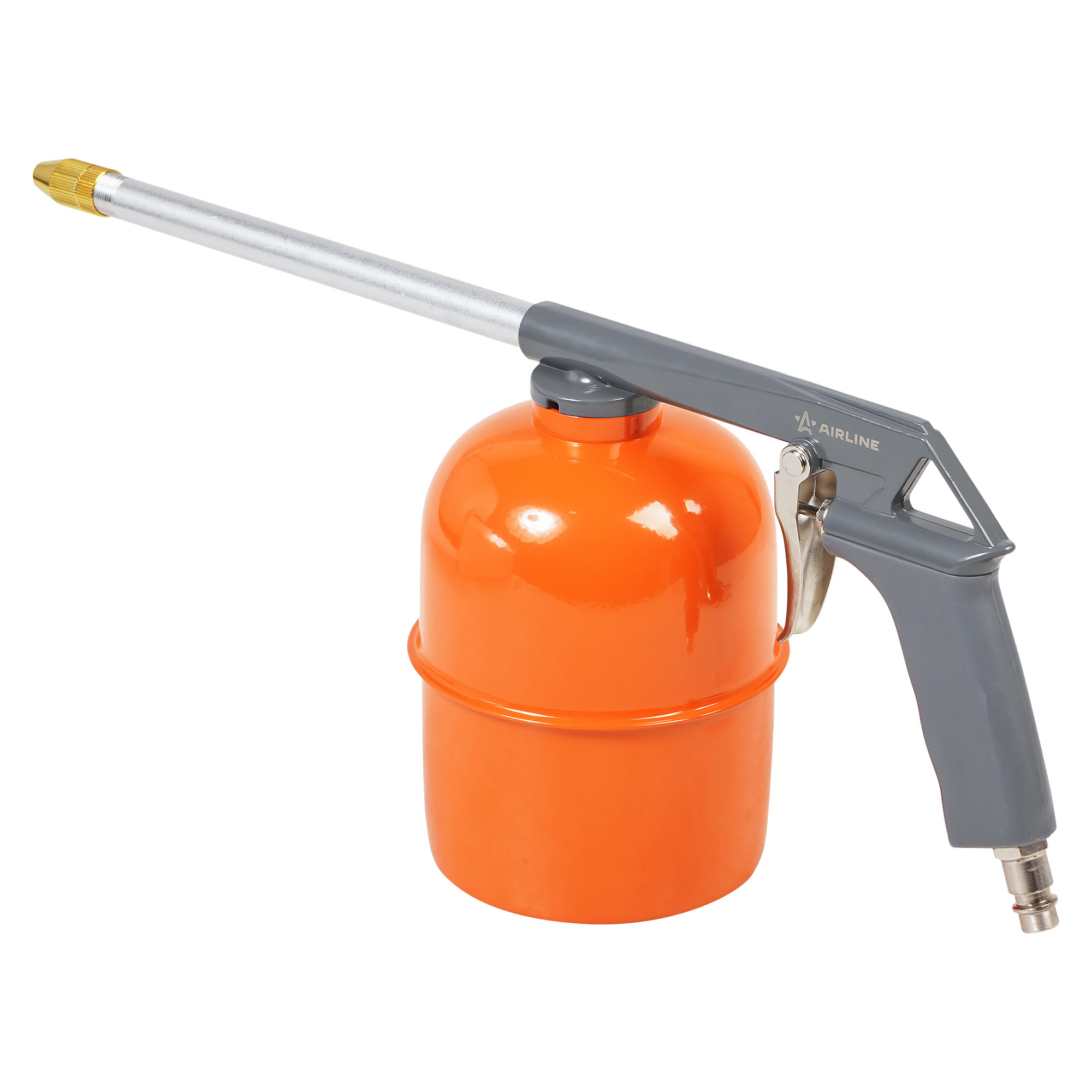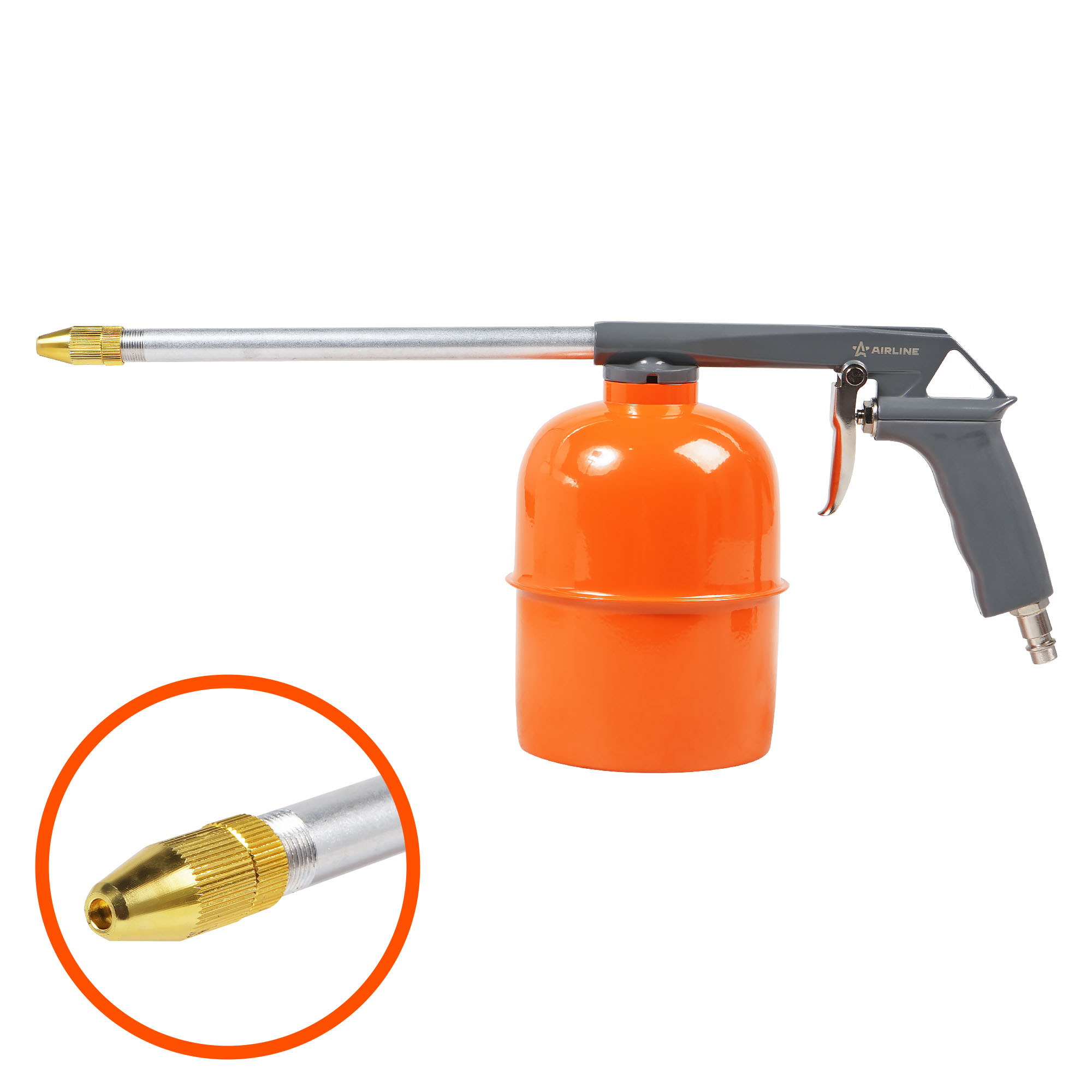 Пистолет изготовлен из металла. Имеет съёмный бачок для распыляемого состава.