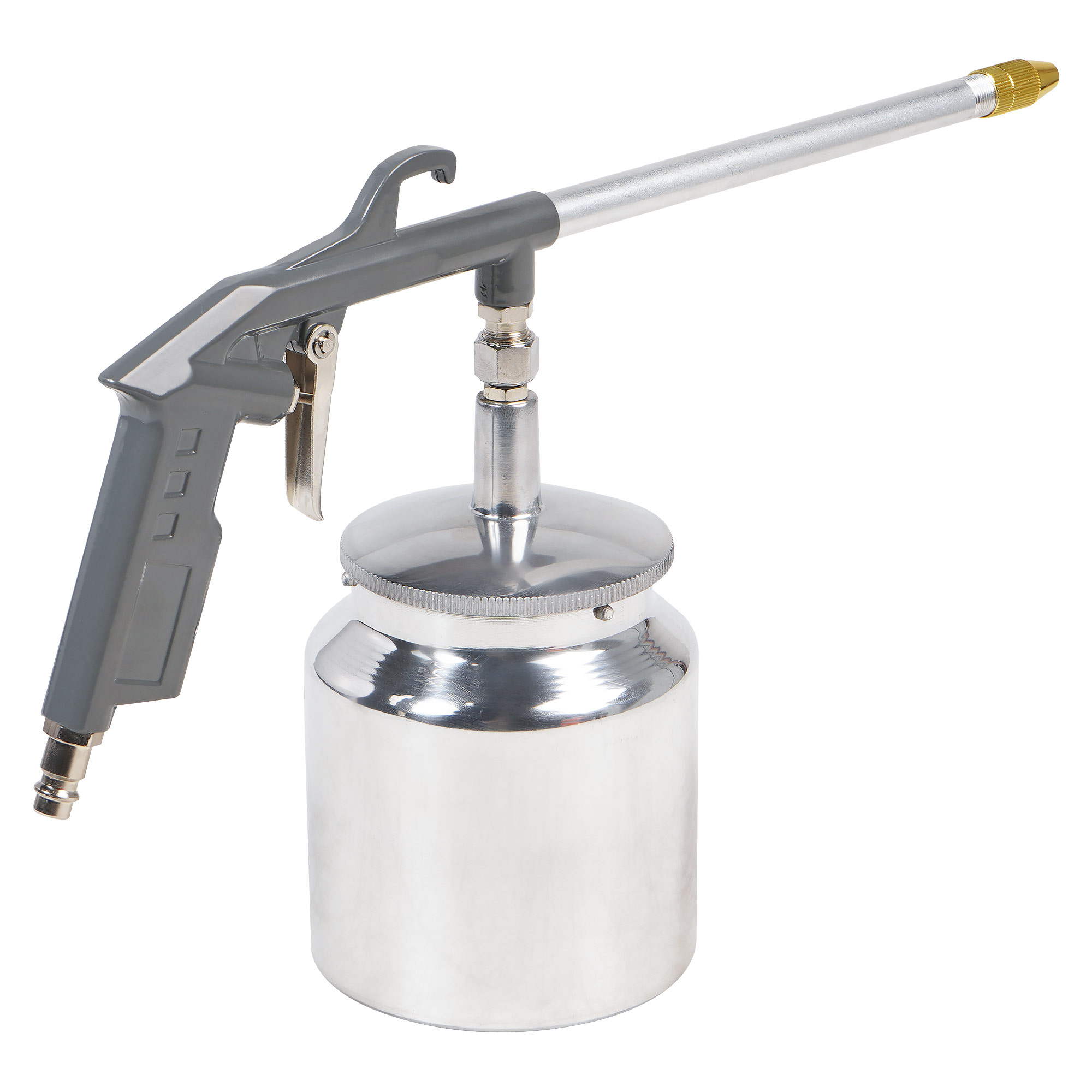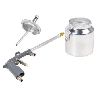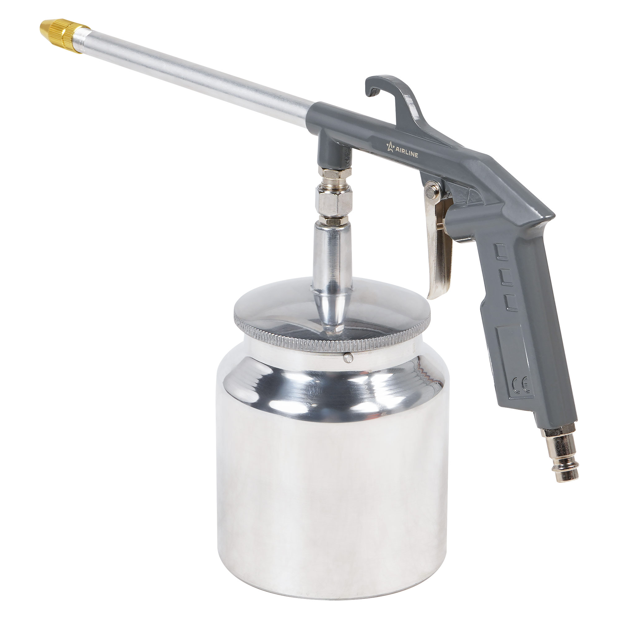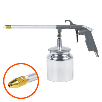 Пистолет изготовлен из металла. Имеет быстросъёмный бачок для распыляемого состава с байонетным присоединением.
