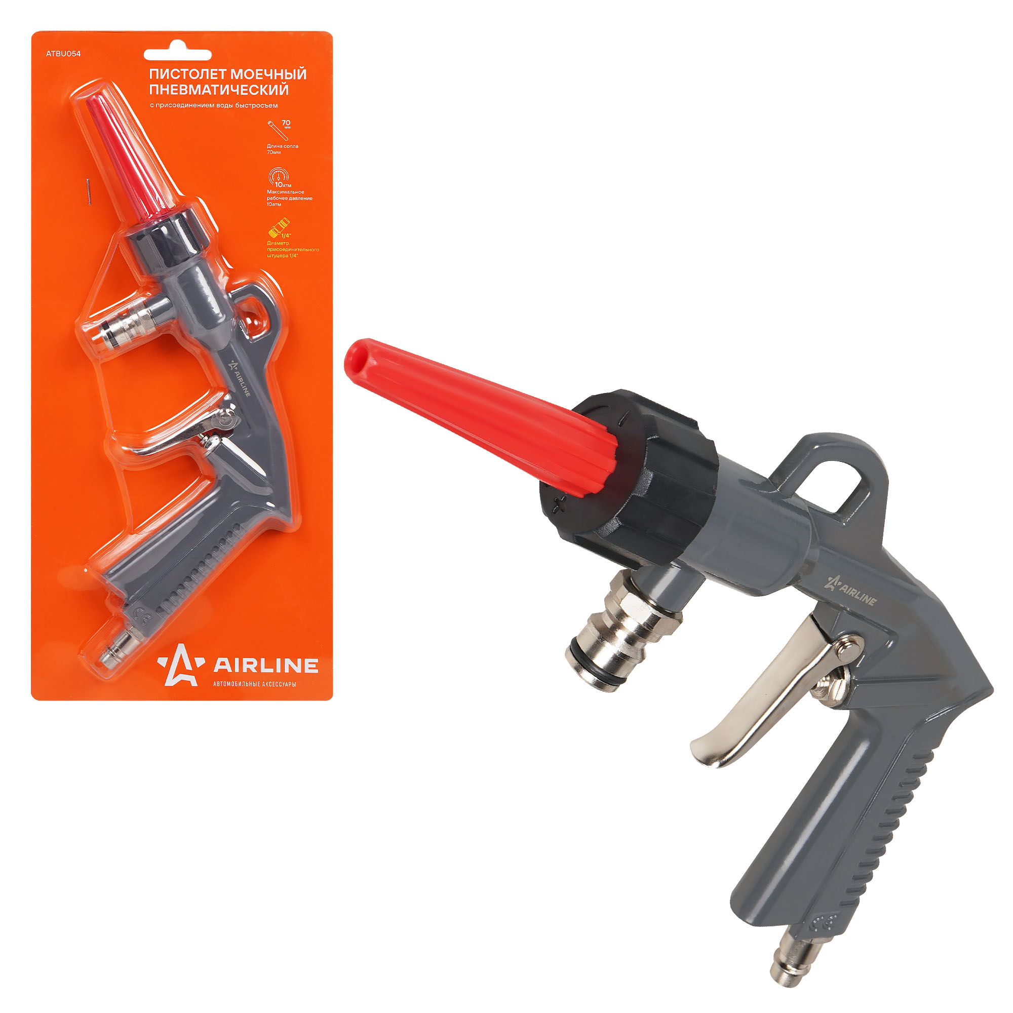 Пистолет изготовлен из металла. Имеет стандартное присоединение для воды "быстросъём".