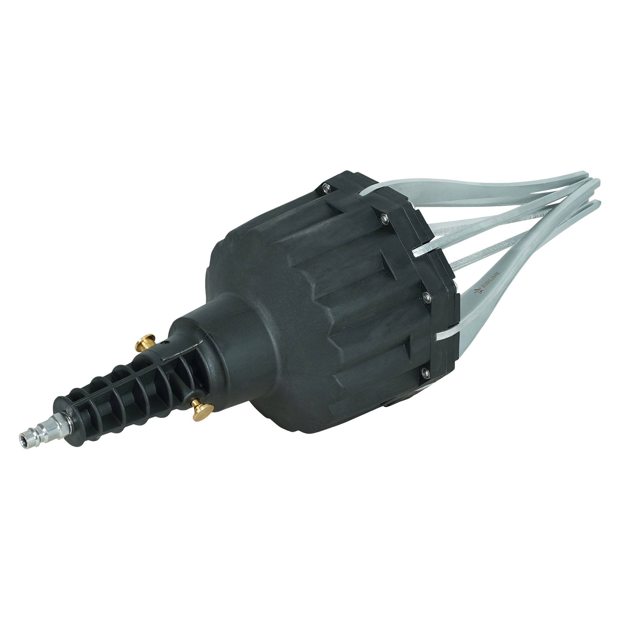 Съемник пыльников ШРУСа предназначен для быстрого монтажа пыльников ШРУС без необходимости разборки привода. Работает с помощью сжатого воздуха, который позволяет растягивать резиновый пыльник, упрощая его установку на гранату. Это незаменимый инструмент для автосервисов, позволяющий значительно упростить и ускорить процесс замены пыльников, обеспечивая аккуратный и надёжный монтаж.