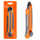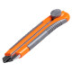 Прочный двухкомпонентный корпус с резиновыми вставками обеспечивает надёжный и безопасный хват. Металлическое ложе для лезвия выдерживает большие нагрузки на инструмент и обеспечивает долговечность. Надёжный фиксатор удерживает лезвие в рабочем положении при любых условиях. Встроенный контейнер для запасных лезвий исключает простои в работе.