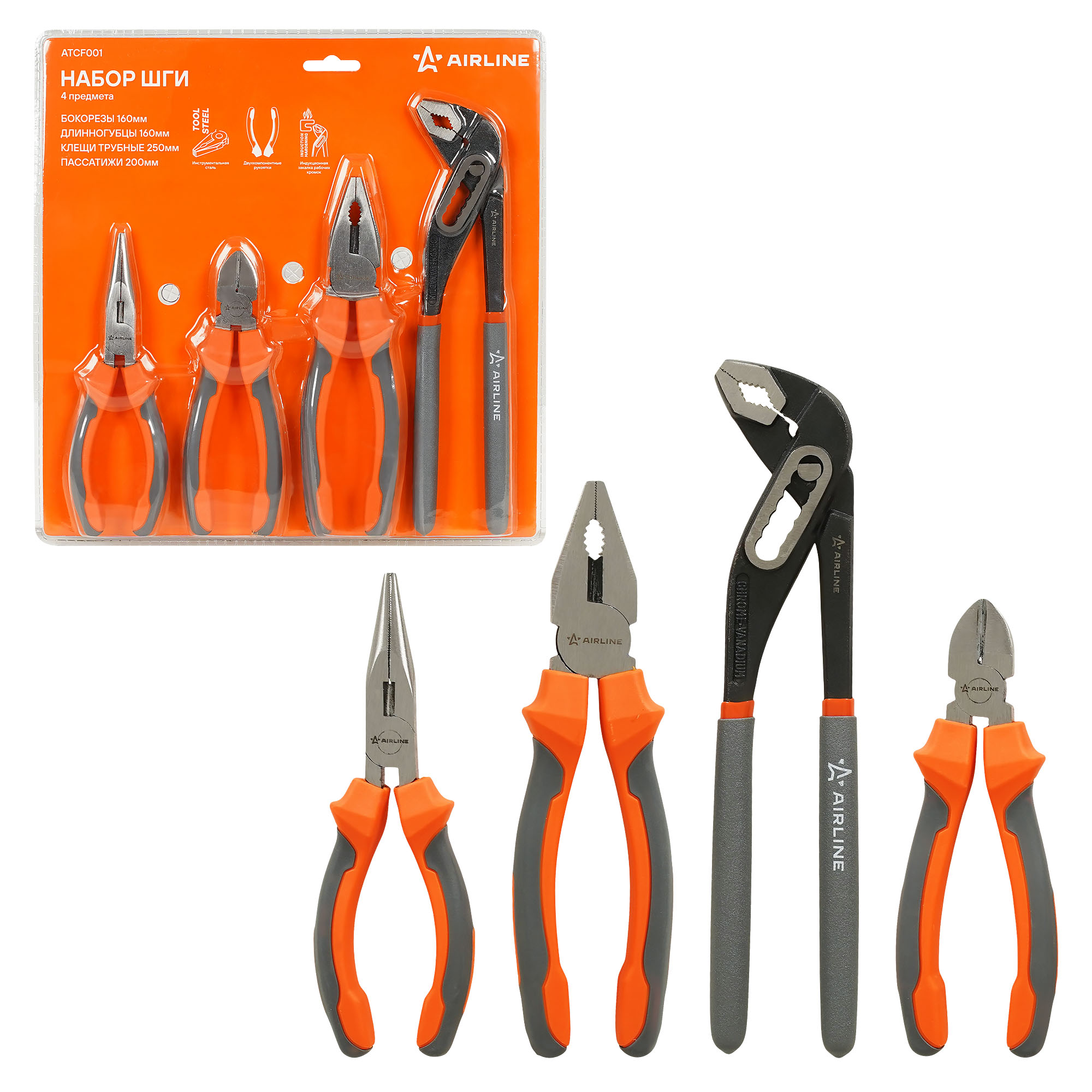 Шарнирно-губцевый инструмент AIRLINE изготовлен из специальной высококачественной инструментальной стали. При производстве заготовки подвергаются закалке и отпуску для улучшения рабочих характеристик инструментов. Режущие кромки подвергаются индукционной закалке. Применяется финишное покрытие двух типов: хромирование и фосфатирование.