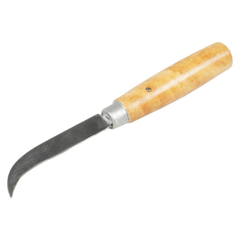 Имеет удобную деревянную ручку, которая не выскальзывает, а также очень острое и надежное серповидное лезвие, что значительно облегчает Вам работу и продлевает срок службы прибора.
