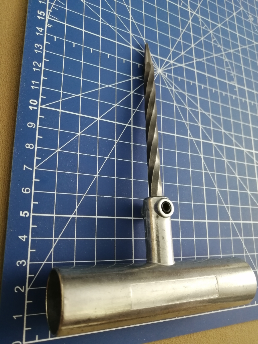 Толщина стенки ручки около 1,2-1,3мм,. Самого шила около 6,7мм..Некоторые другие размеры на фото. Из минусов : не доложили второй винт, и на шиле в месте поджима винтами одна площадка ровная, вторая с параллельной стороны проточена криво,,Возможно нам попался брак. Доработаем надфилем.
