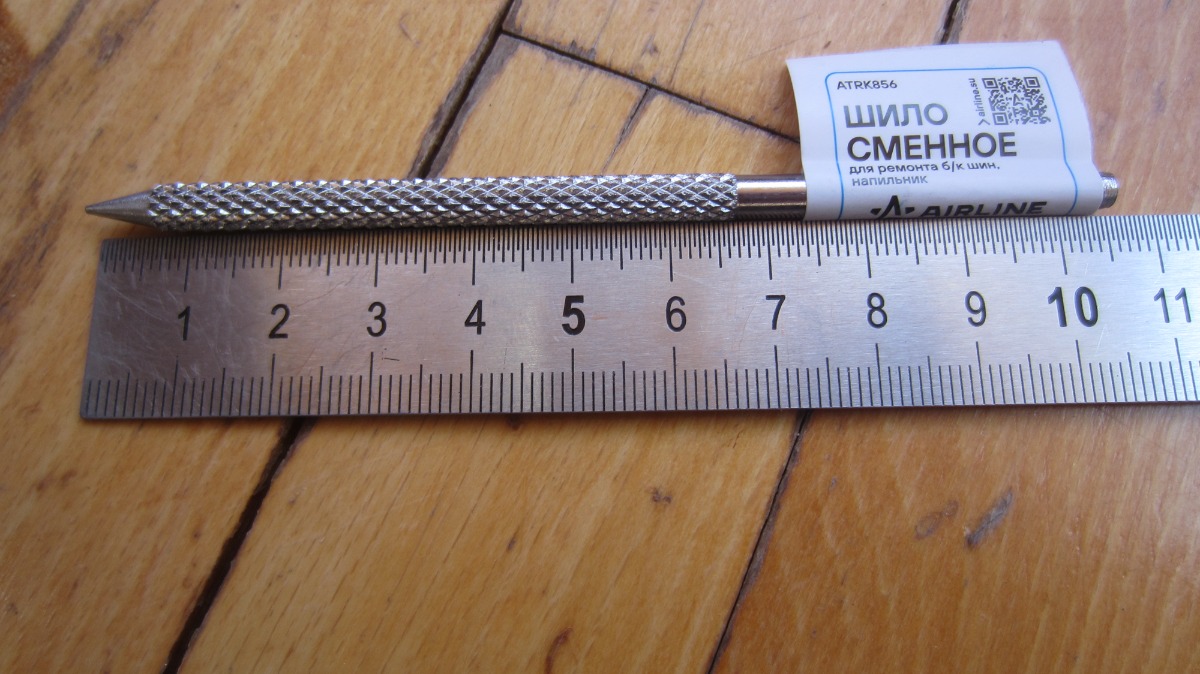 Шило используется для подготовки к ремонту меcта прокола на б/к шинах. Совместимо с рукоятками ATRK30, ATRK31, ATRK32. Шило изготовлено из качественной углеродистой 45 стали, благодаря чему способно выдерживать большие нагрузки. Длина рабочей части - 66мм, диаметр - 5мм.