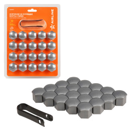 Колпачки на колесные болты/гайки 21 мм, серые матовые, пластик, 20 шт.+ съёмник