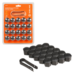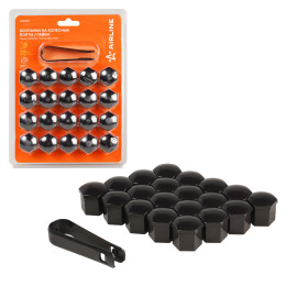 Колпачки на колесные болты/гайки 21 мм, черные матовые, пластик, 20 шт.+ съёмник
