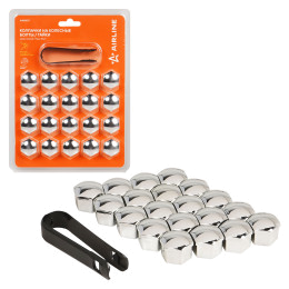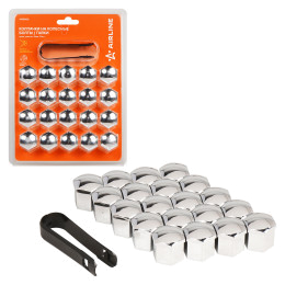 Колпачки на колесные болты/гайки 17 мм, хром, пластик, 20 шт.+ съёмник