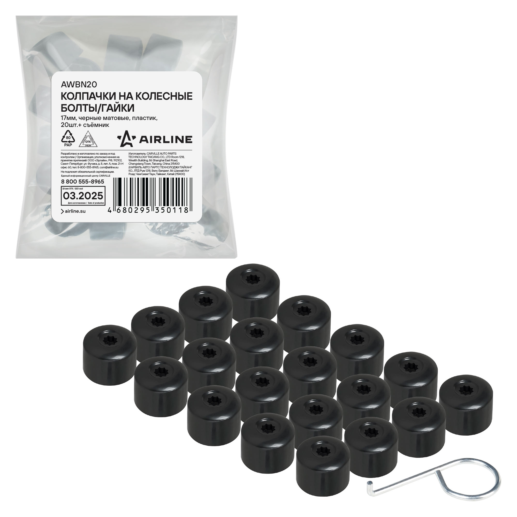 Колпачки на колесные болты или гайки, которые упакованы в наборы по 20 шт. со специальным съемником для облегчения демонтажа. Изготовлены из ударопрочного пластика, подходят для колесных болтов 17 мм. Колпачки устанавливаются сверху колесных болтов/гаек и служат для защиты колесного крепежа от внешнего воздействия агрессивной среды, сокрытия дефектов, а также являются отличным дополнением к внешнему тюнингу автомобиля.