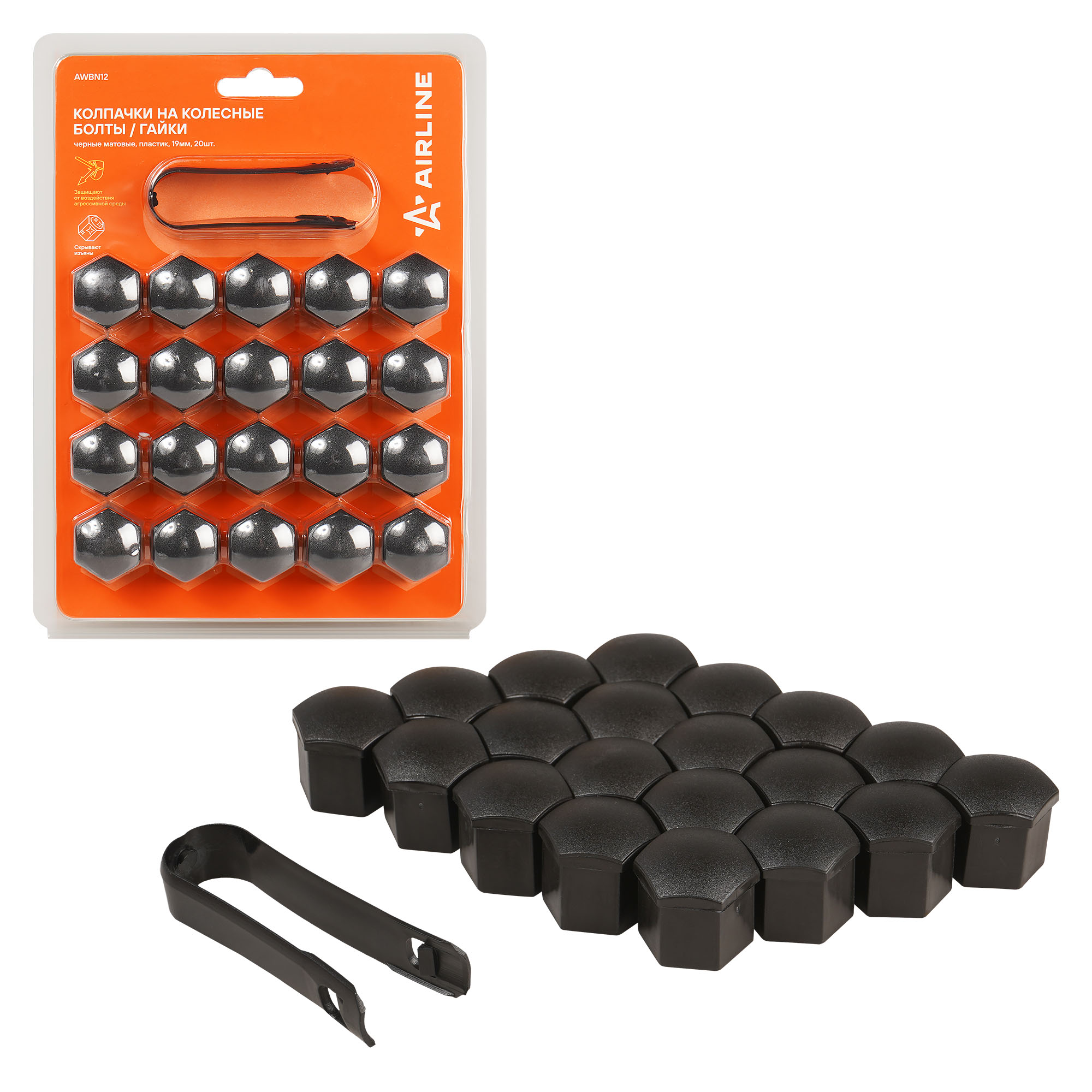 Колпачки на колесные болты/гайки 19 мм, черные матовые, пластик, 20 шт.+ съёмник