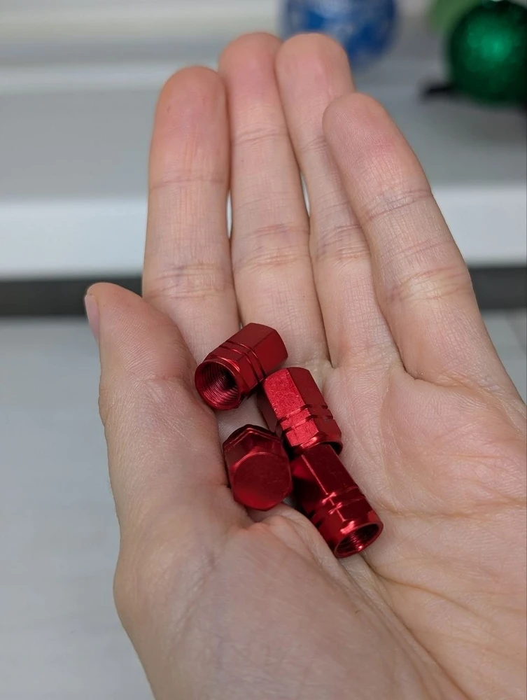 Колпачки сделаны из качественного металла. Яркие красные глянцевые, брала под своё красное авто, герметично прилегают. Доставка заняла всего 1 день
