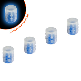 Колпачки на шинный вентиль S-1, светящиеся, синие, ABS-пластик, 4 шт.