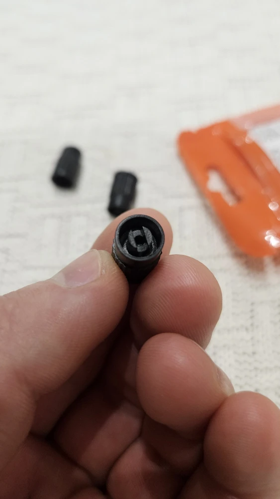 Достоинства: Колпачки черного цвета, идеально подойдут под черный автомобиль, удобно пользовать, не закисают