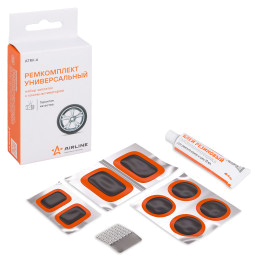 В каталоге AIRLINE представлены ремкомплект ATRK-2 со жгутами резины и модель ATRK-3 с клеем-активатором для бескамерных шин. Также в каталоге представлен комплект для камер и велошин ATRK-1 с заплатками разных размеров. В комплект входит инструмент с витым наконечником, инструмент с игольчатым наконечником, и жгуты сырой резины, которые также можно купить отдельно. Подробная информация по использованию указана в инструкции.
