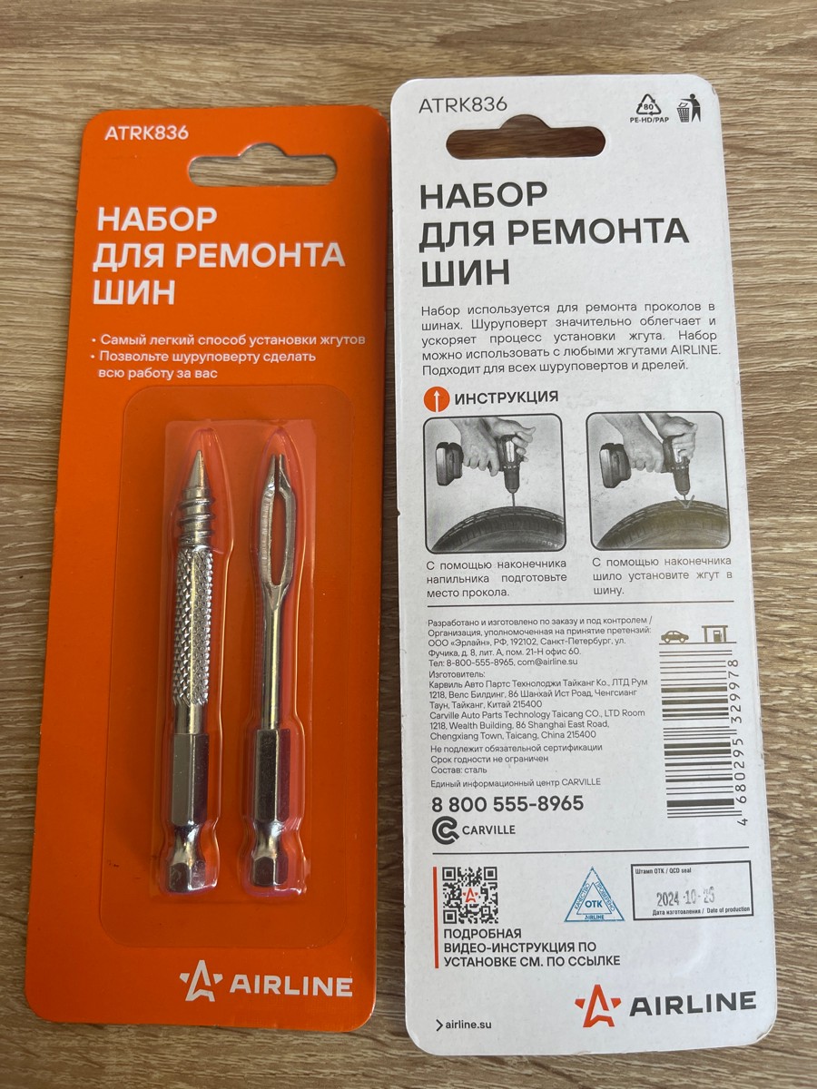 Набор используется для ремонта проколов в шинах с помощью дрели. Набор позволяет без усилий отремонтировать любые проколы диаметром до 1 см. Подробную инструкцию по применению смотрите по ссылке.